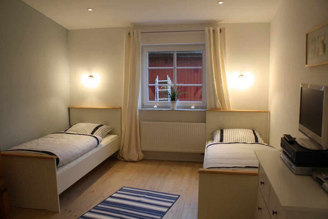 Unser Rödhus hat zwei Schlafzimmer. Das eine ist ausgestattet mit einem schönen Doppelbett, Kleiderschrank und einem Ganzkörperspiegel, das andere mit zwei gemütlichen Einzelbetten und einem variablen Tagesbett. Ein Kleiderschrank, eine Schubladenkommode sowie ein Fernsehgerät und ein DVD-Player gehören in dieses Zimmer. Im Ferienhaus gibt es 2 Bäder: Ein gemütliches Duschbad mit Fenster, Eck-Runddusche, Rainshower-Kopfbrause, großem Waschtisch mit Spiegel, Kosmetikspiegel, Haartrockner und Toilette sowie ein Bad mit Fenster, Toilette, Handwaschtisch mit Spiegel, Haartrockner, Kosmetikspiegel und einer Waschmaschine.