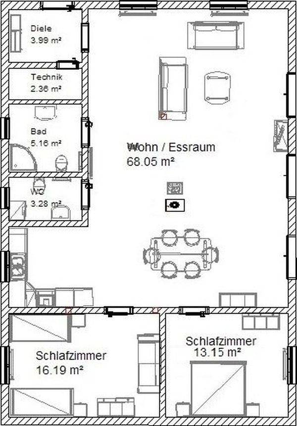 Unser hochwertig eingerichtetes, 112 qm großes Ferienhaus bietet Platz für bis zu 6 Personen. Es verfügt über einen sehr großzügigen Wohn-Essbereich, von dem aus man einen freien Blick in die Angelner Knicklandschaft genießen kann. Die moderne Küche ist harmonisch in den Wohnbereich eingebunden und hat einen Kühlschrank, einen Herd mit Ceranfeld und einen Backofen. Geschirrspüler, Wasserkocher, Kaffeemaschine, Toaster und Mikrowelle sowie Töpfe und Pfannen gehören zur Ausstattung dazu. Für den gemütlich gedeckten Tisch sind ausreichend Besteck, Gläser und Geschirr vorhanden. Ein Fondue und ein Raclette für gemütliche Stunden runden das Ganze ab.