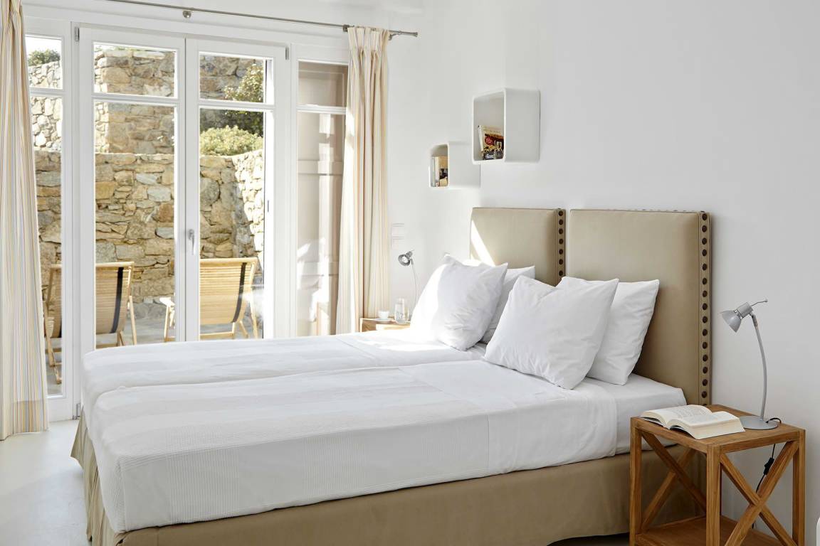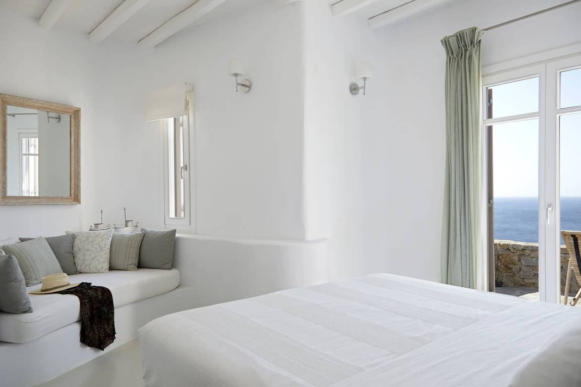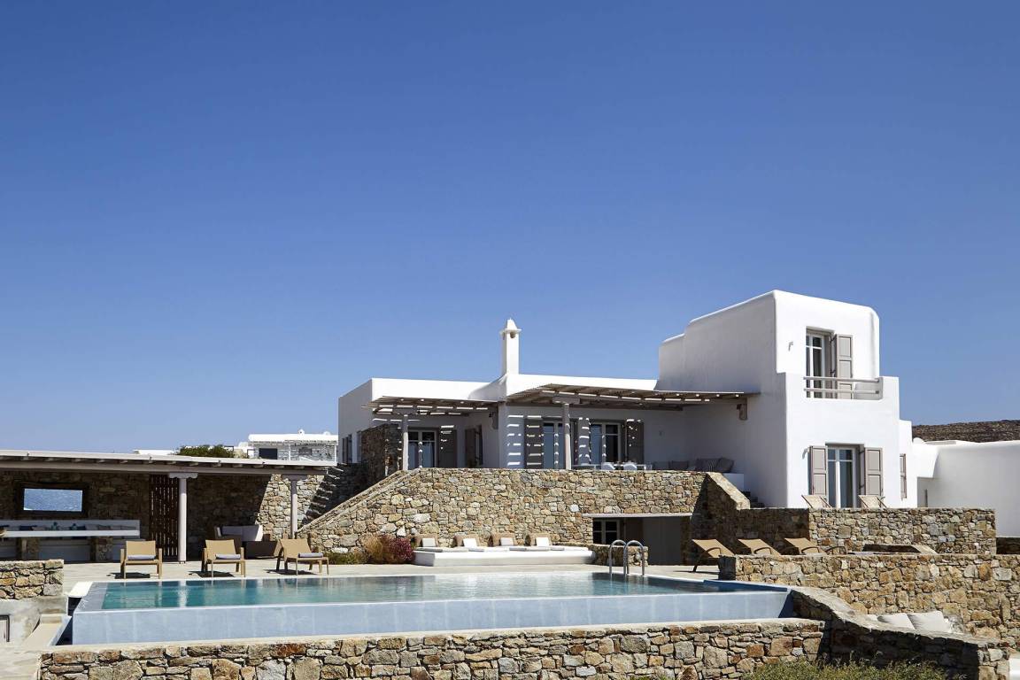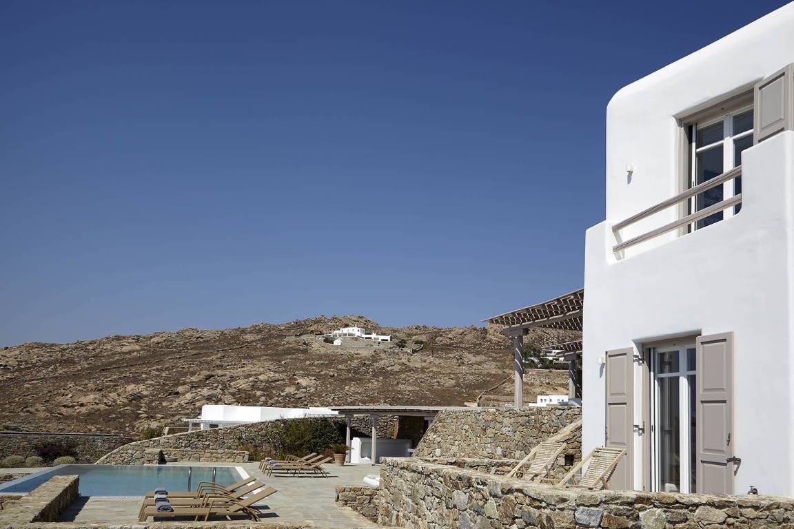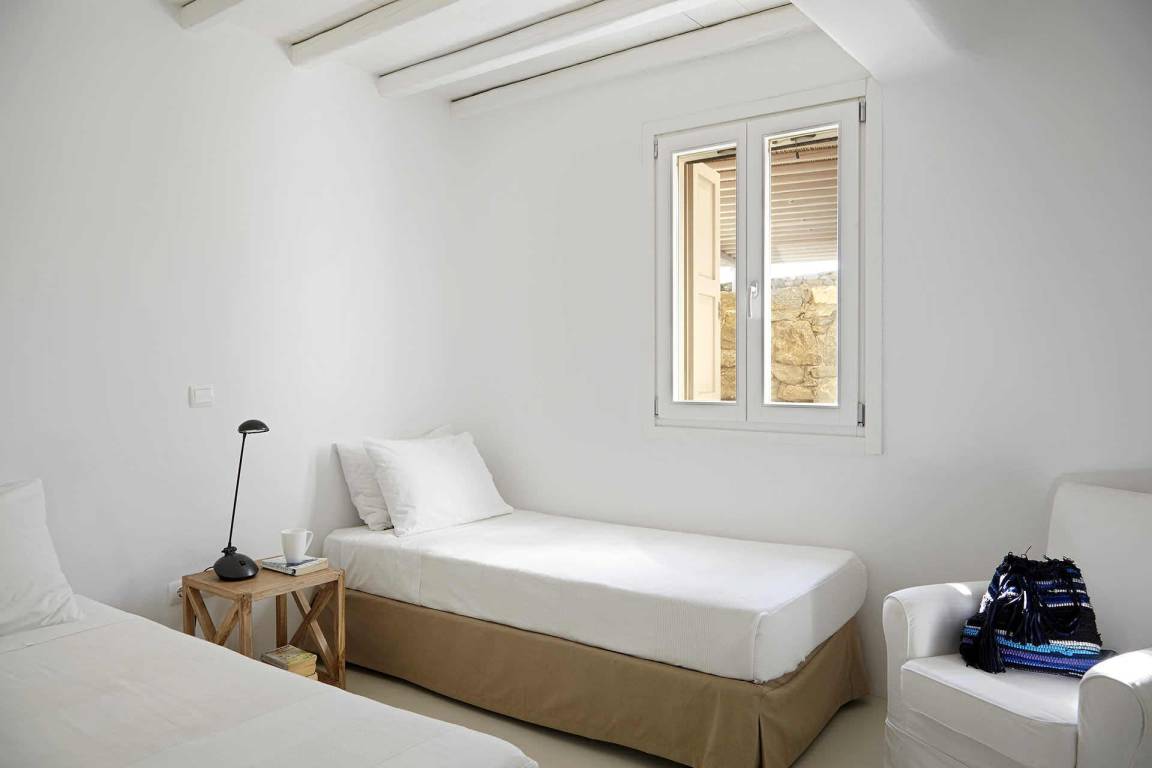 Die Villa Helios erstreckt sich über mehrere Ebenen und bietet Platz für bis zu 10 Gäste in 5 Schlafzimmern und 6 Bädern. Die Schlafzimmer sind jeweils individuell möbliert und in verschiedenen Konfigurationen ausgestattet, um unterschiedliche Gästekonstellationen zu ermöglichen. Die 6 Bäder sind durchgehend vorhanden und ermöglichen jedem Gast einen privaten Zugang zu gut ausgestatteten Sanitäranlagen. Das Raumkonzept der Villa verbindet Innen- und Außenbereiche durch großzügige Öffnungen und natürliche Belichtung.