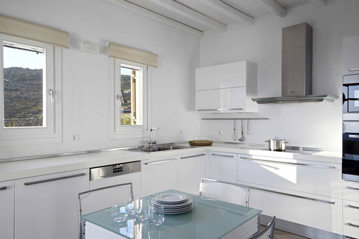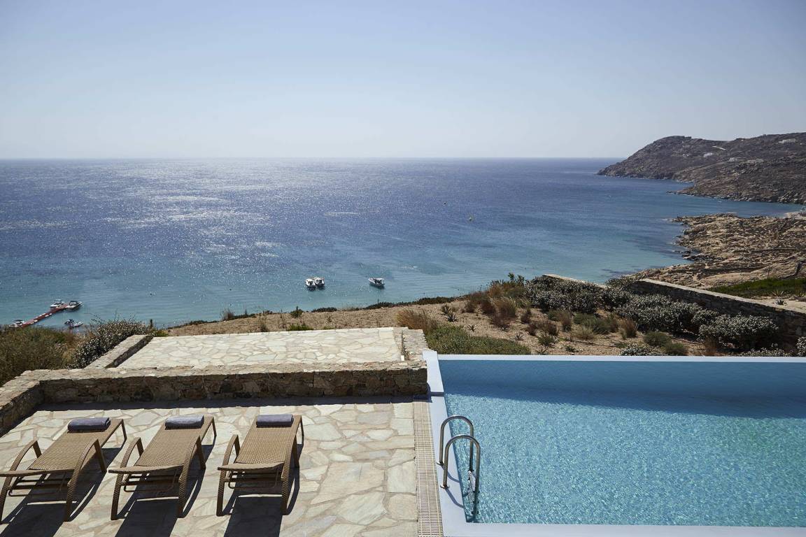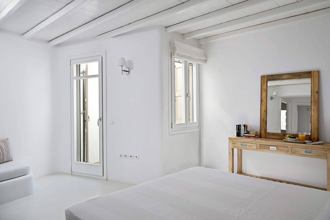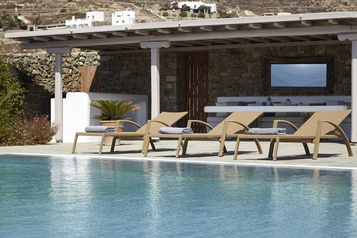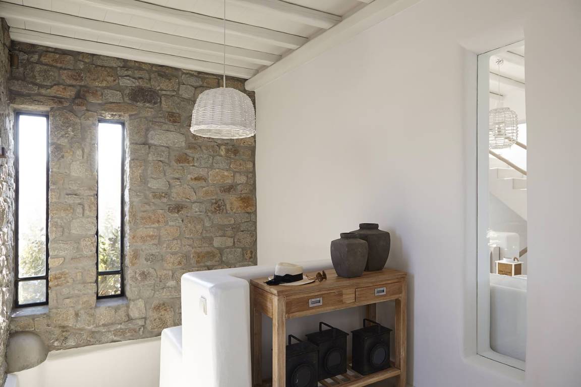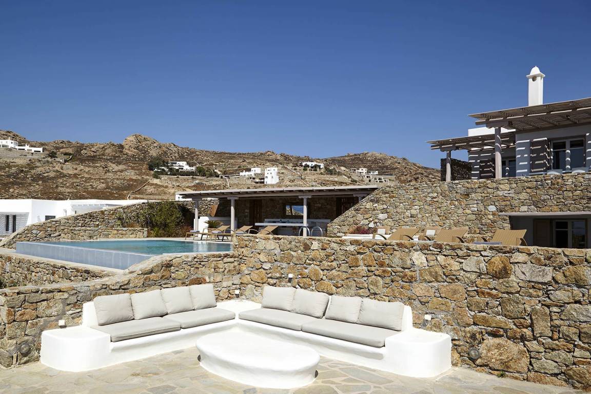 Die Villa Helios erstreckt sich über mehrere Ebenen und bietet Platz für bis zu 10 Gäste in 5 Schlafzimmern und 6 Bädern. Die Schlafzimmer sind jeweils individuell möbliert und in verschiedenen Konfigurationen ausgestattet, um unterschiedliche Gästekonstellationen zu ermöglichen. Die 6 Bäder sind durchgehend vorhanden und ermöglichen jedem Gast einen privaten Zugang zu gut ausgestatteten Sanitäranlagen. Das Raumkonzept der Villa verbindet Innen- und Außenbereiche durch großzügige Öffnungen und natürliche Belichtung.