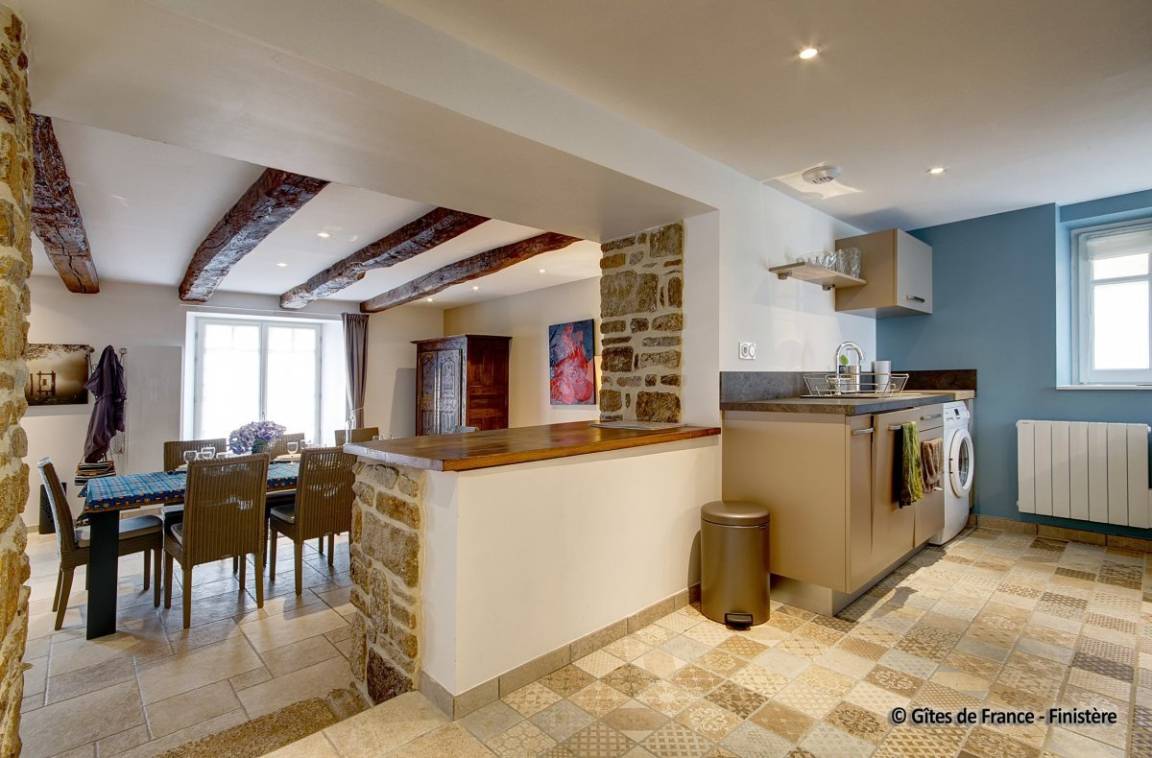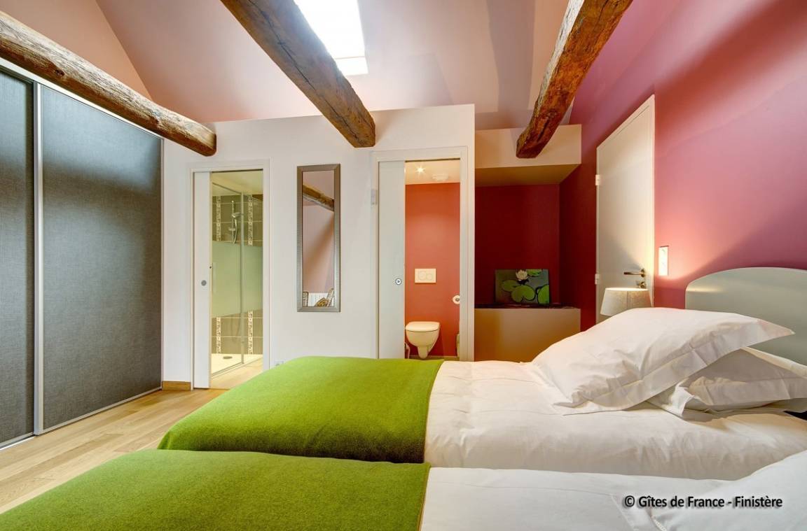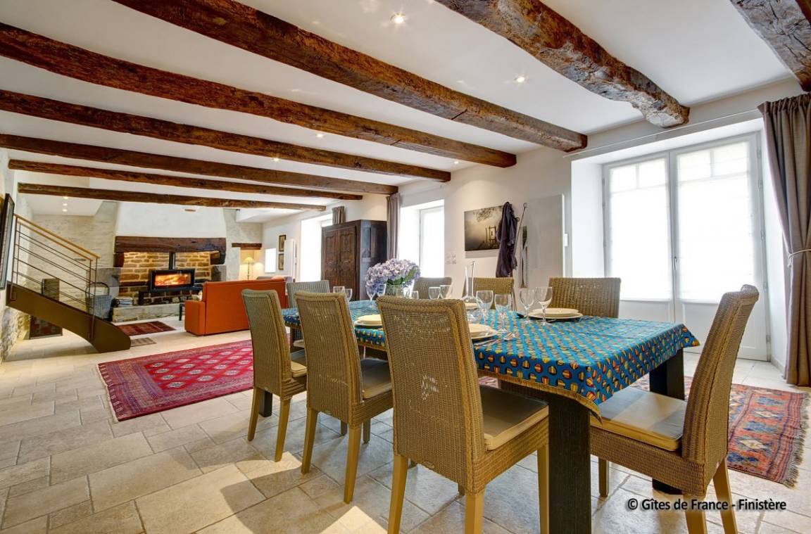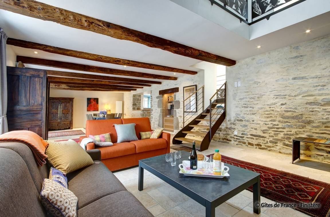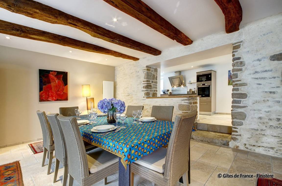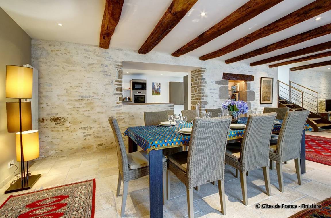 „Nous avons séjourné (2 couples) dans ce gîte pendant une semaine. Nous avons été accueillis très chaleureusement par les propriétaires et leur fils, qui se sont montrés toujours très disponibles, et pleins d'attention pour nous garantir un séjour agréable, confortable, calme et apaisant. Le gîte est, j'ose le dire, parfait! Tout y a été pensé, conçu et réalisé avec goût, dans les moindres détails. La décoration est belle, le confort optimum. L'ensemble des prestations est exceptionnel: Que ce soit pour la vaisselle, les ustensiles de cuisine, les espaces de sanitaire, ou le linge mis à disposition, de très bonne qualité et en nombre largement suffisant. La mise à disposition d'une vaste, belle et complète salle de jeux ajoute à ce caractère exceptionnel. Le gîte est idéalement situé pour visiter tous les lieux incontournables de cette partie du Finistère sud. Nous sommes reconnaissants aux propriétaires soucieux du bien être des occupants. Tout cela ne peut que nous inviter à revenir en ces lieux et à les recommander sans restriction.“