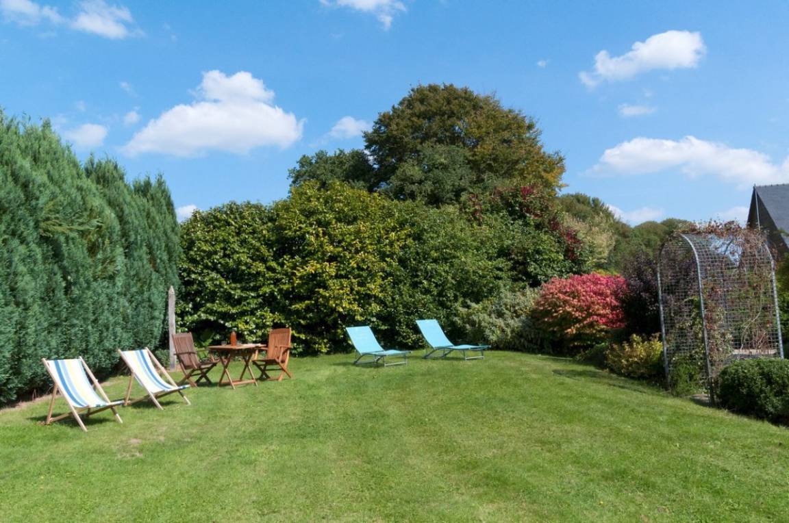 Individuelles Haus neben 2 weiteren Gîtes, in der Nähe der Eigentümer. EG: Ess-/Wohnraum mit offener Küche und Kaminofen, Doppelzimmer (Bettbreite 1,60m), Waschküche, Duschraum, sep. WC. 1.Stock: Doppelzimmer (Bettbreite 1,60m) + Babybett, 2 Zweibettzimmer, Bad, sep. WC. Ölzentralheizung. Eigener Garten, Gartenmöbel, Grill.