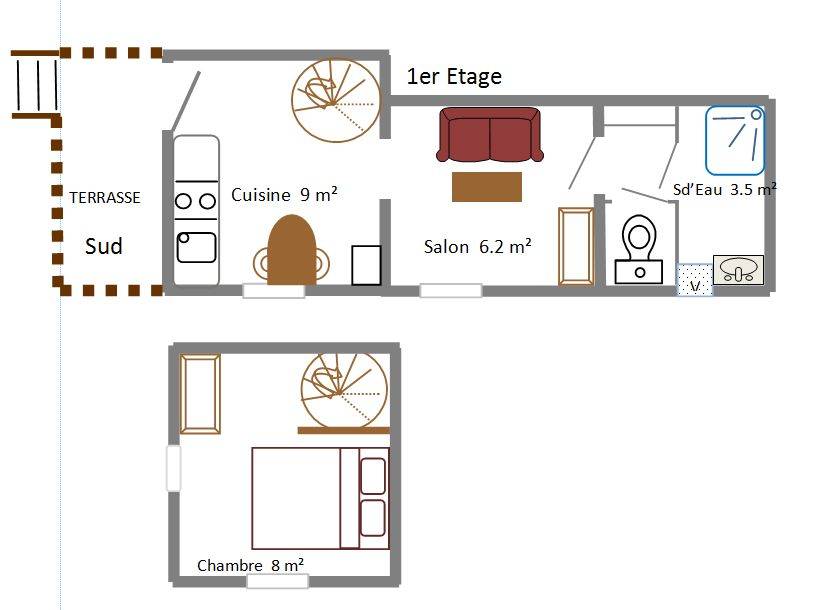 33 m² Gîte ∙ 1 Schlafzimmer ∙ 2 Gäste