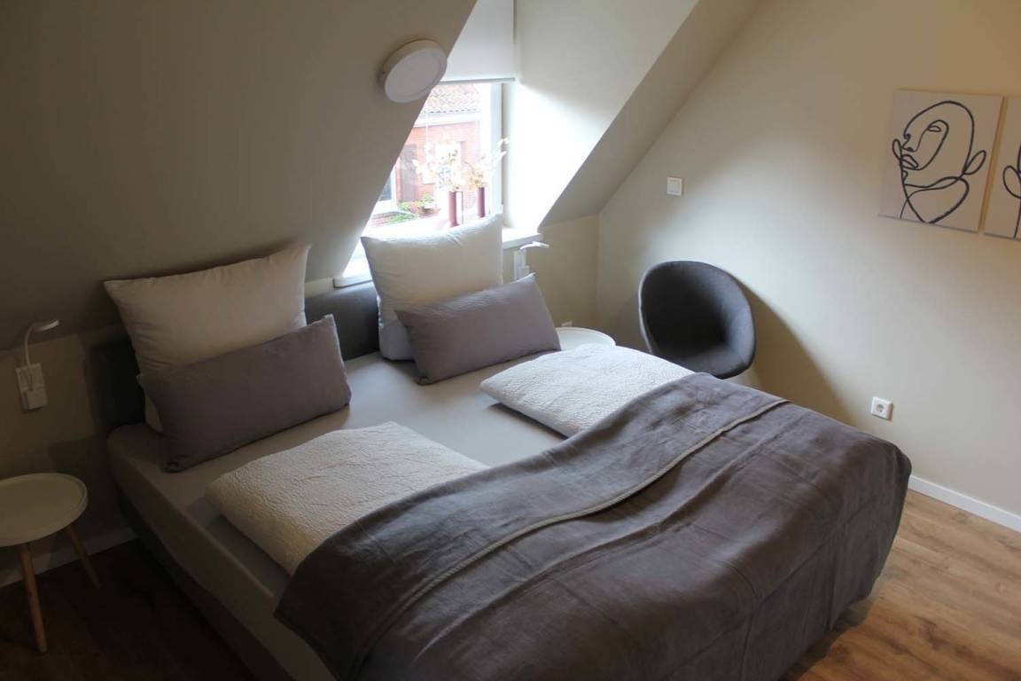 Die Ferienwohnung "Flut" liegt im ersten Stockwerk und bietet auf 45 Quadratmetern Platz für zwei Erwachsene (Doppelbett) und zwei Kinder (Einzelbetten). Die Mindestaufenthaltsdauer beträgt fünf Übernachtungen. Die Wohnung ist nicht barrierefrei.