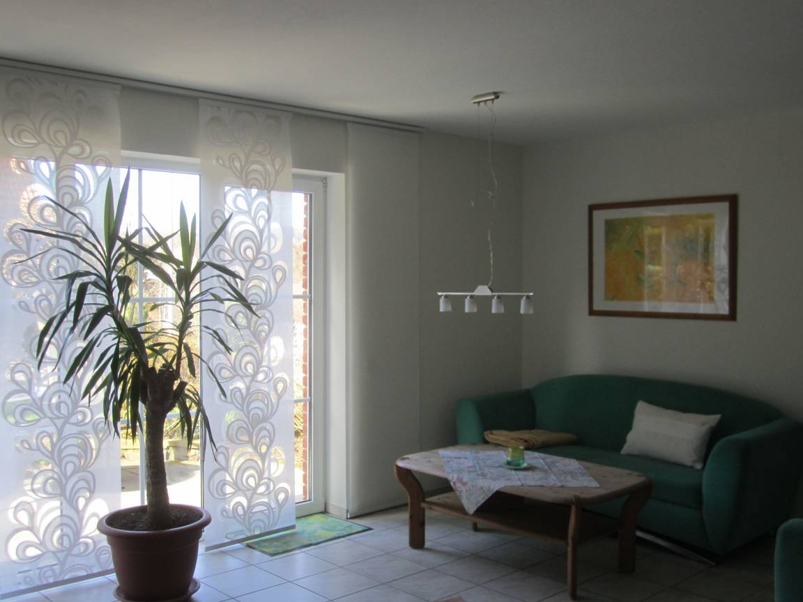 Die Ferienwohnung besteht aus einem hellen Wohn-Schlaf-Raum (1 Doppelbett 180 x 100 cm, teilbar in 2 Einzelbetten) mit Sofa, Tisch und Fernseher. Eine komplett eingerichtete Küche ist mit der Essecke im Erker ein Blickfang. Das Bad mit Fenster ist mit einer Duschwanne ausgestattet. Ein kleiner Abstellraum steht für Ihre Sachen zur Verfügung. Eine Terrasse mit Gartenmöbeln und ein PKW-Stellplatz sind ebenfalls vorhanden. Der Eingang ist ebenerdig.