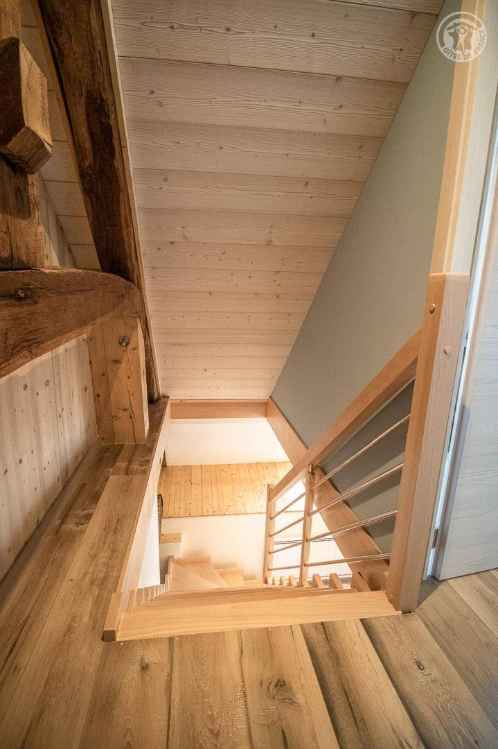 Ferienhaus im 1. Stock in einer alten Scheune neben der Wohnung der Eigentümer. Unabhängiger Eingang. 1. Stock: Terrasse, Wohnküche, Badezimmer (ebenerdige Dusche + Doppelwaschbecken), separates WC mit Waschbecken. 2. Etage: 1 Schlafzimmer (1 Doppelbett 140x190 cm). Privater Parkplatz. Tiere im Einzelfall.
