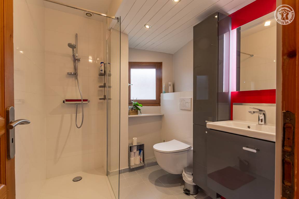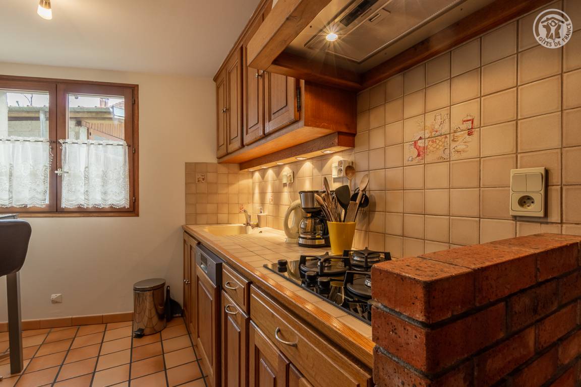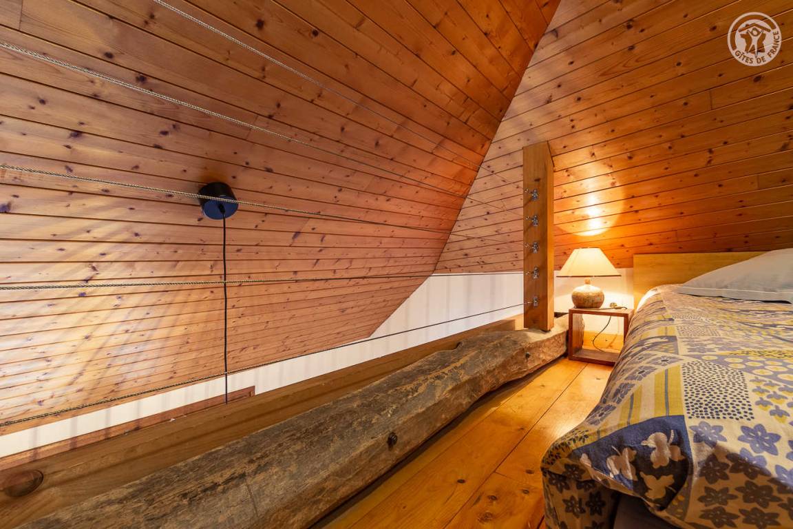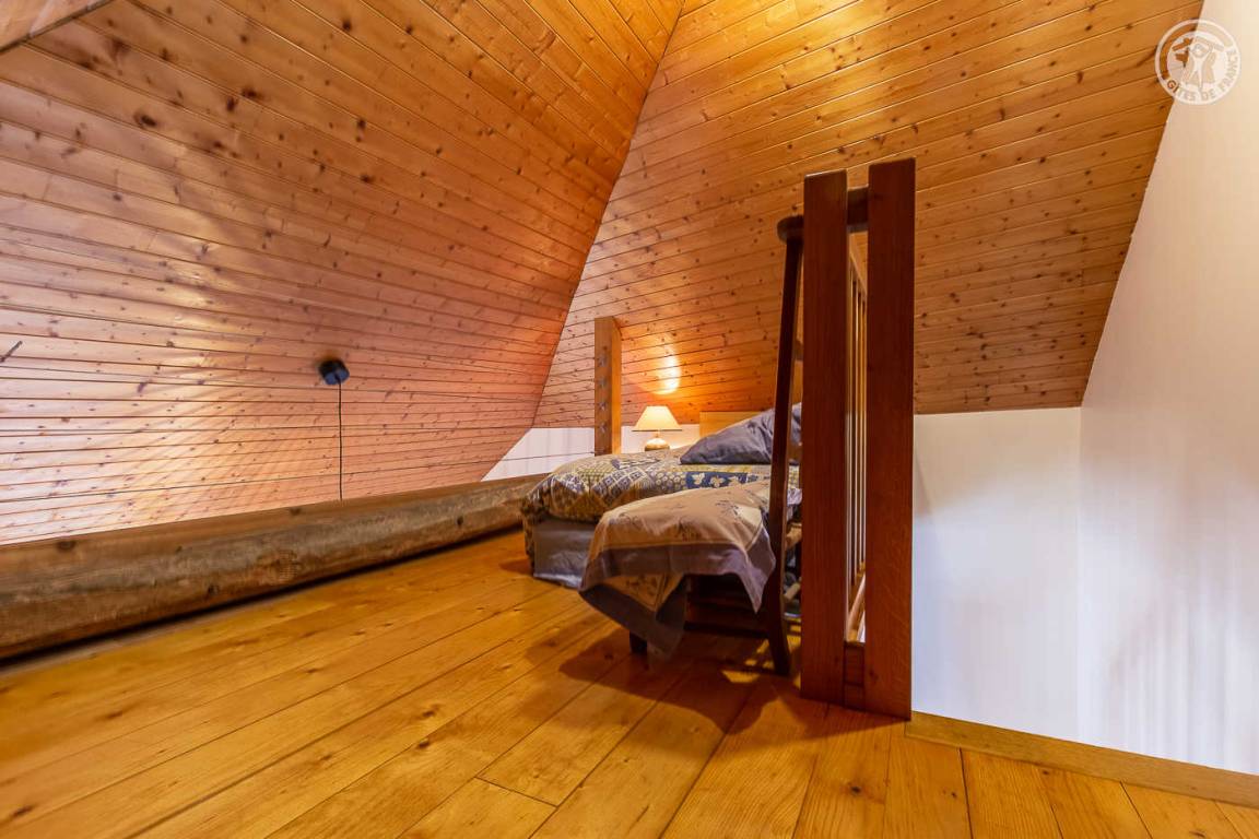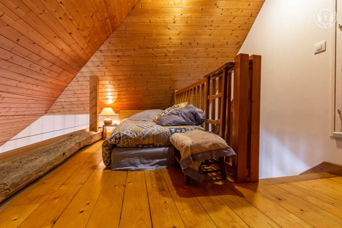 Ferienhaus auf 2 Ebenen, bestehend aus Erdgeschoss: Eingang, Küche und Keller, Wohnzimmer (Pelletofen mit manueller Befüllung), separates WC mit Waschbecken. Obergeschoss: 2 Schlafzimmer (1 Doppelbett 140x190 cm / 1 Doppelbett 140x190 cm), ein Badezimmer (Dusche und WC), ein Wohnzimmer (Schlafsofa für 2 Personen) mit Zugang zur Terrasse, eine Mezzanine unter dem Dach mit Platz im Wohnzimmer (1 Einzelbett). Privatparkplatz mit Carport, 50 m von der Hütte entfernt.