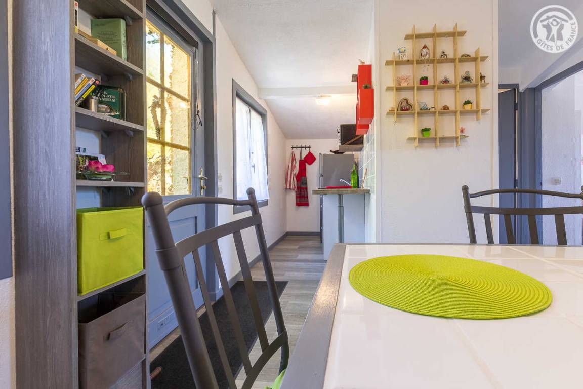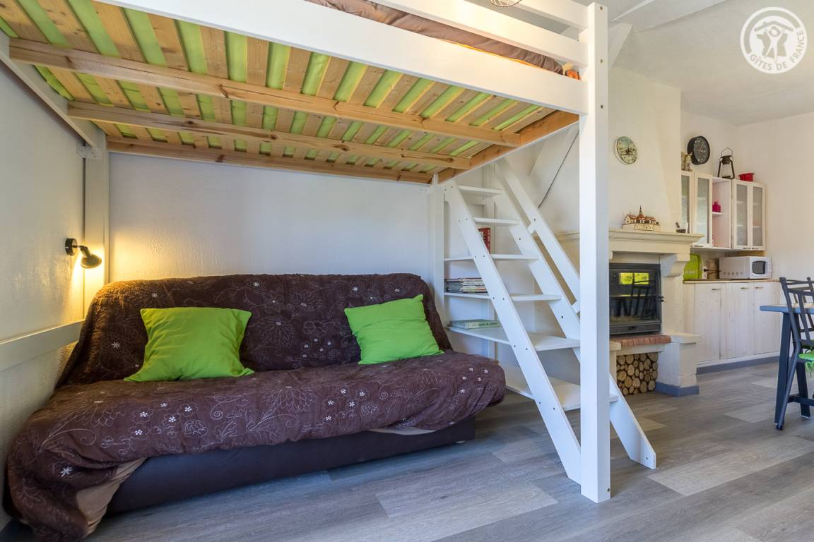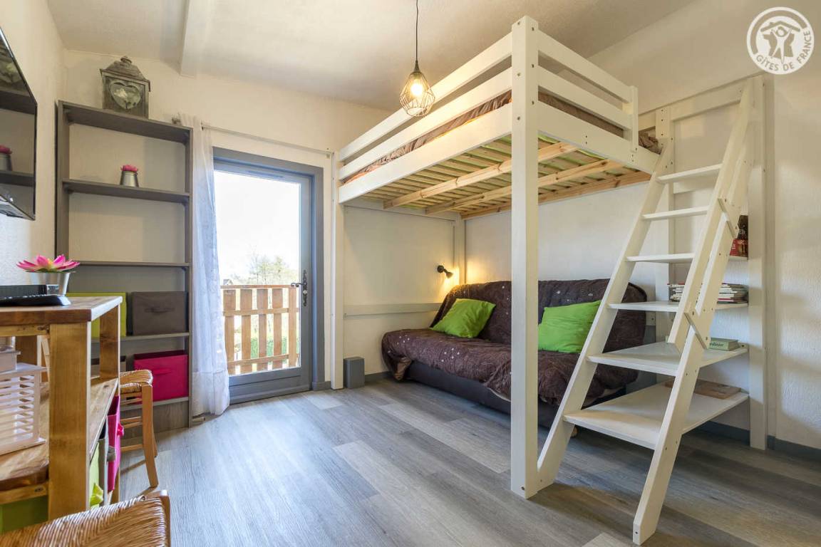 Im Haus der Eigentümer unabhängiger Zugang (über einige Außenstufen). 1 Parkplatz neben der Gîte. Wohnzimmer mit Küchenbereich (1 Doppelstockbett 140x190 cm), 1 Schlafzimmer (1 Doppelbett 140x190 cm), Duschbad (Dusche und WC), kleiner Balkon, eigene Terrasse und großer gemeinsamer Treppengarten mit den Eigentümern.