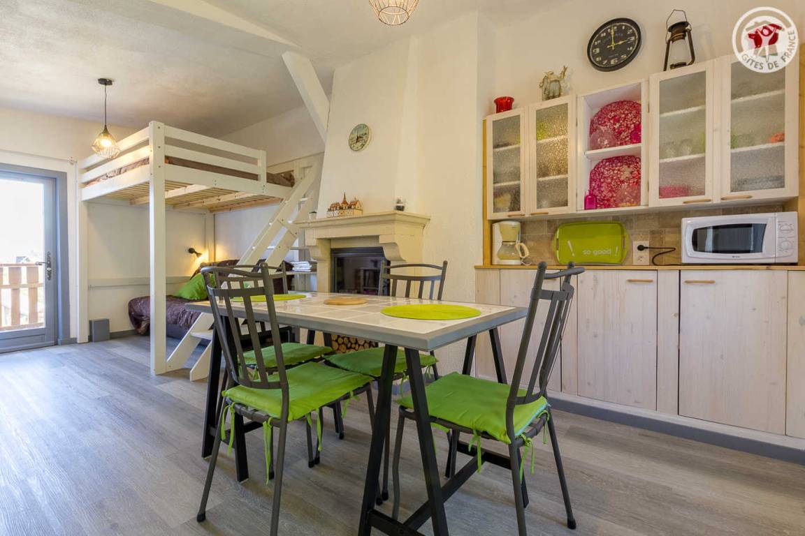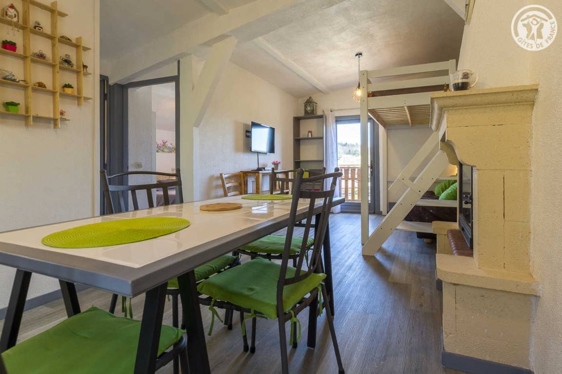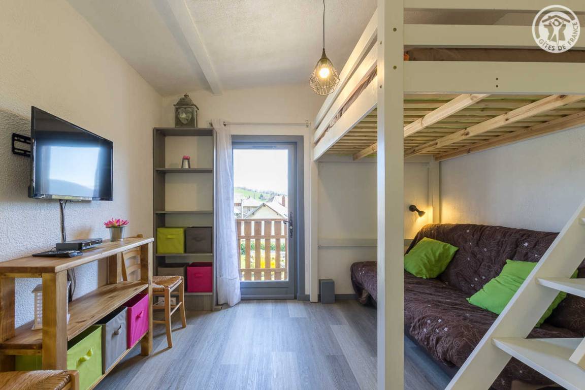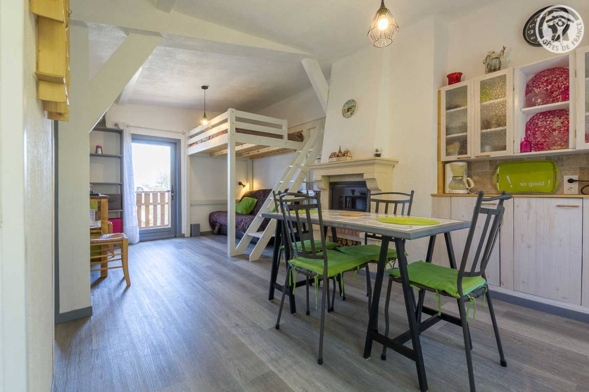 Im Haus der Eigentümer unabhängiger Zugang (über einige Außenstufen). 1 Parkplatz neben der Gîte. Wohnzimmer mit Küchenbereich (1 Doppelstockbett 140x190 cm), 1 Schlafzimmer (1 Doppelbett 140x190 cm), Duschbad (Dusche und WC), kleiner Balkon, eigene Terrasse und großer gemeinsamer Treppengarten mit den Eigentümern.