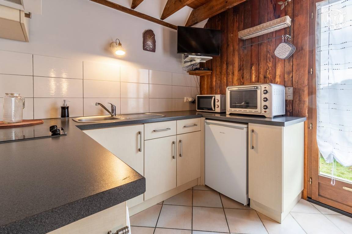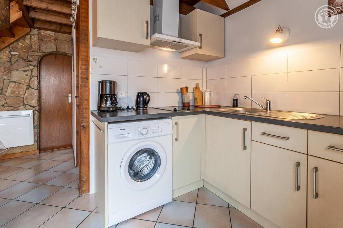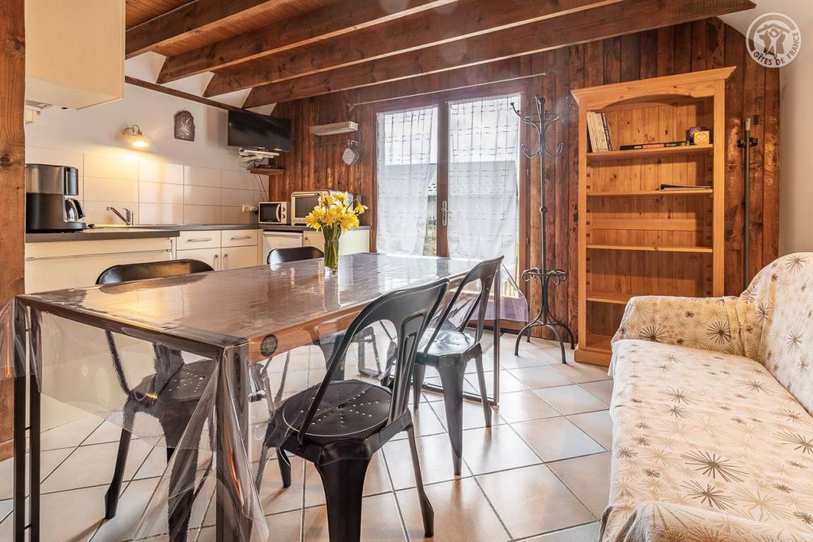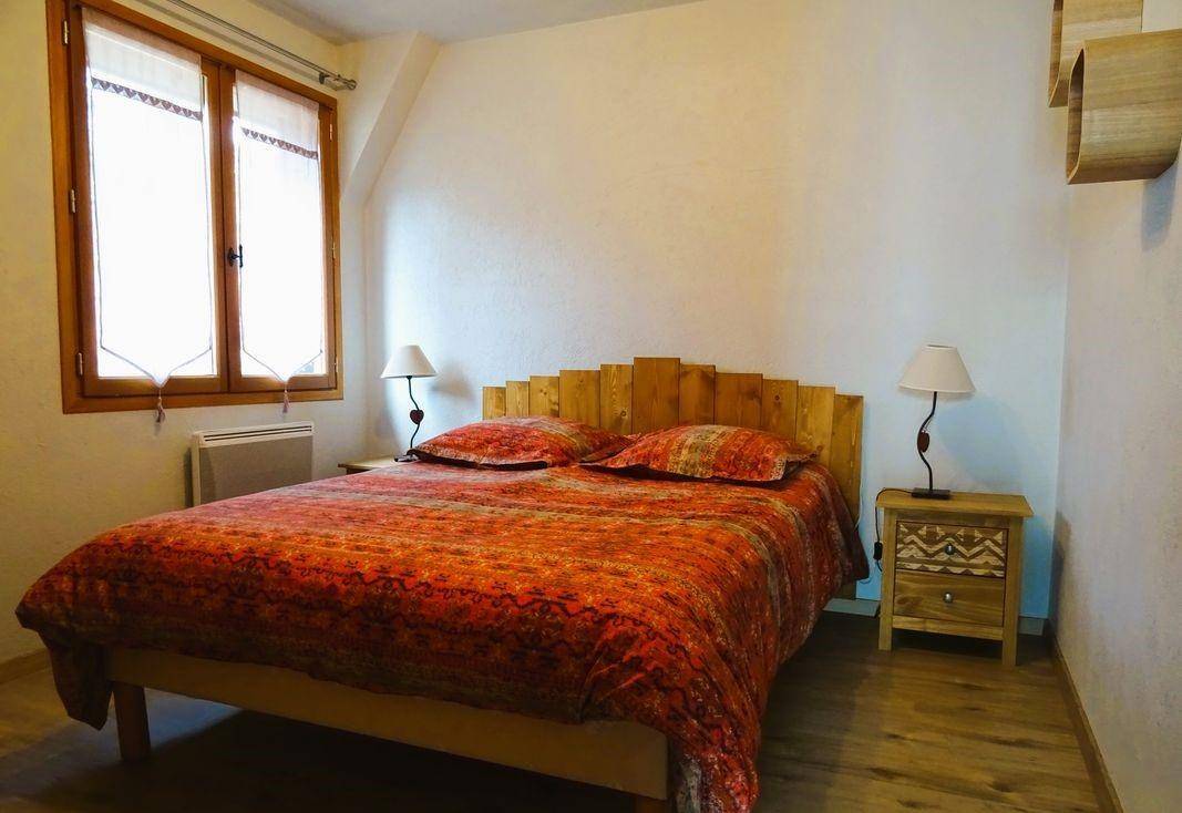 Doppelhaushälfte, angrenzend an das Haus des Eigentümers. Unabhängiger Zugang über die Terrasse (2 Holzstufen): Wohnküche, Badezimmer (Dusche und WC), 1 Schlafzimmer (1 Doppelbett 140x190 cm). 1. Stock: Schlafzimmer im Zwischengeschoss (3 m², Carrez-Recht) mit 1 Einzelbett 90 x 190 cm. Terrasse und Privatgrundstück. Privater Parkplatz (1 Platz). Bettwäsche inklusive, Betten gemacht. Gesamte Wohnfläche inkl. Dachgeschoss: 45m².