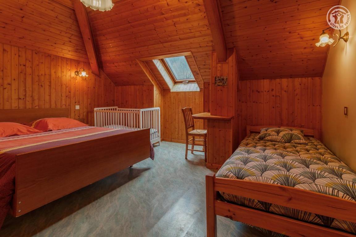 Gîte auf 2 Ebenen im Haus des Eigentümers. 1. + 2. Etage: Wohnküche, Loungebereich, 2 Schlafzimmer (1 Doppelbett 140x190 cm / 1 Doppelbett 140x190 cm, 1 Einzelbett 90x190 cm), Badezimmer (Dusche). Terrasse + gemeinsames Grundstück mit den Eigentümern (Bowlingspiel + Schaukel). Asphaltierter Innenhof (2 Fahrzeuge). Skifahren auf dem Granier 2,5 km, im Désert d'Entremont (Alpin + Langlauf) 4,5 km. Challes les Eaux entwickeltes Gewässer 20 km.