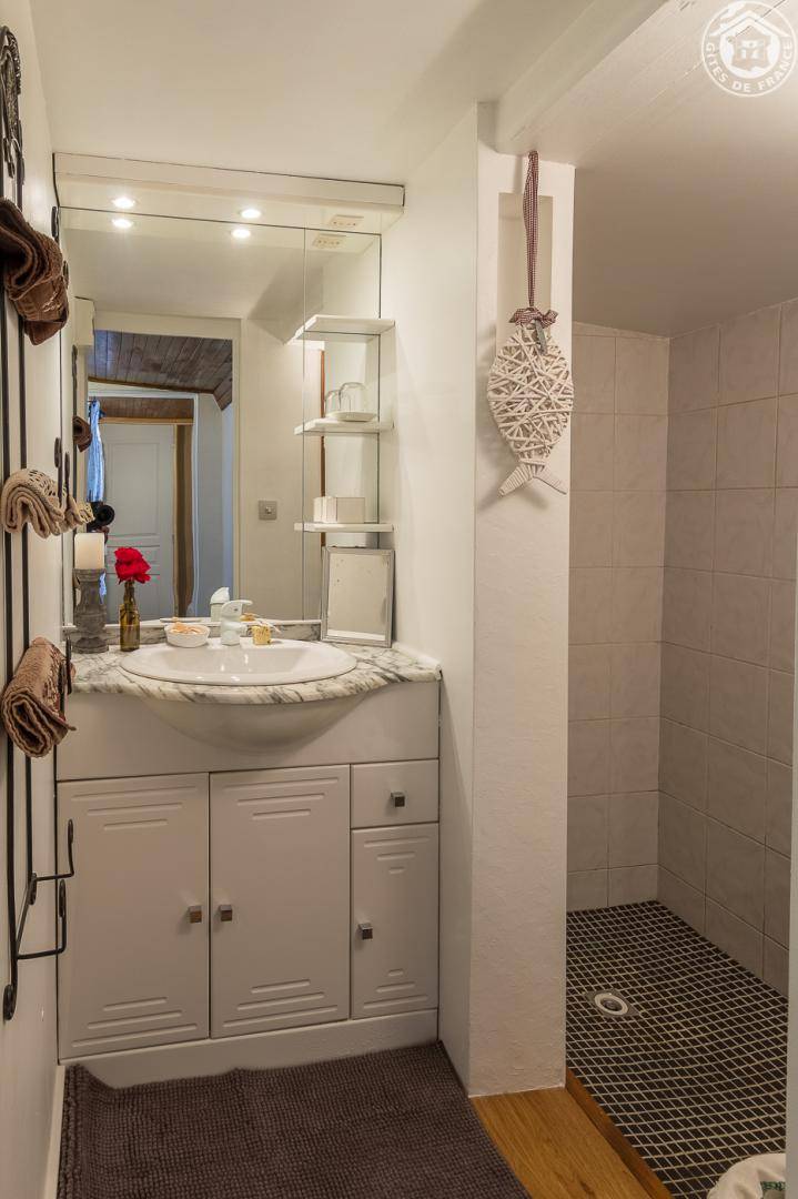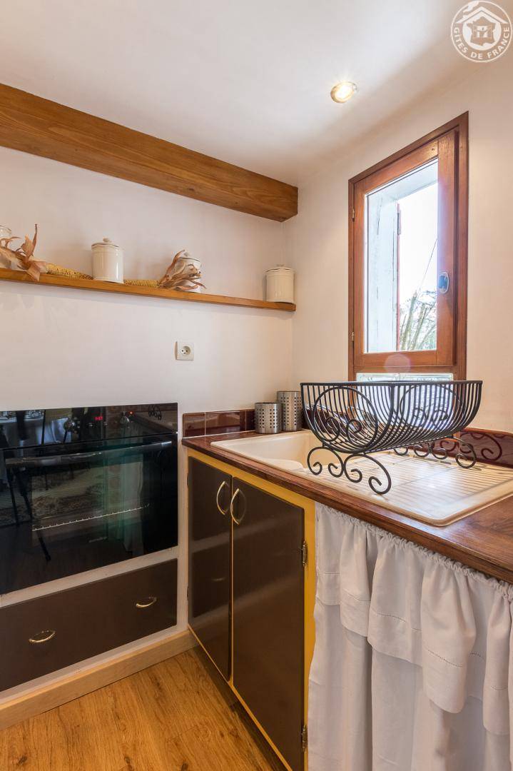 „Très joli gîte, décoré avec bcp de goût. confortable, malgré l escalier un peu malaisé à monter. notre chien a bcp apprécié le jardin, entièrement clos. et nous le calme et la beauté de l endroit Équipement ménager tiptop“
