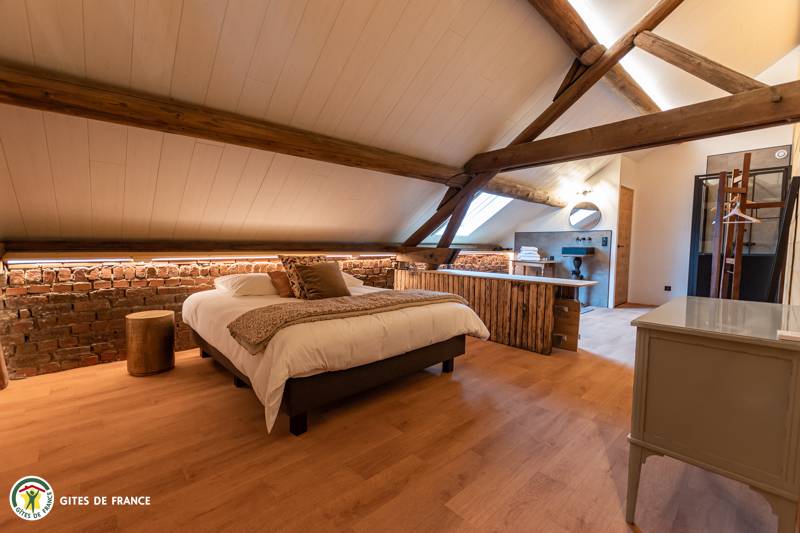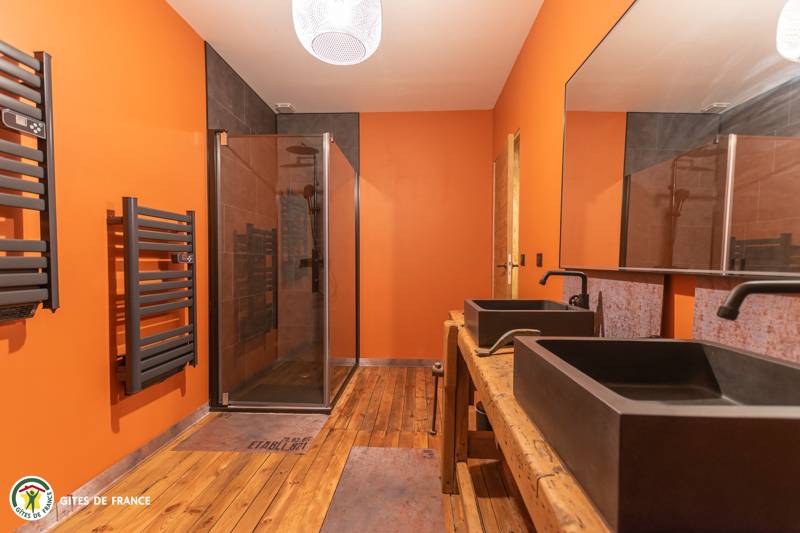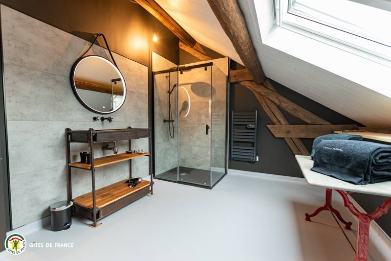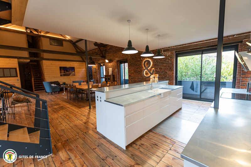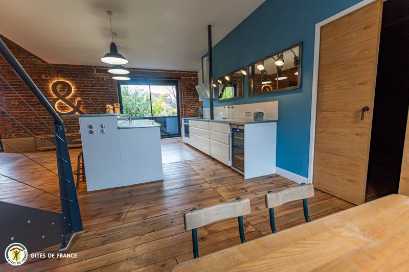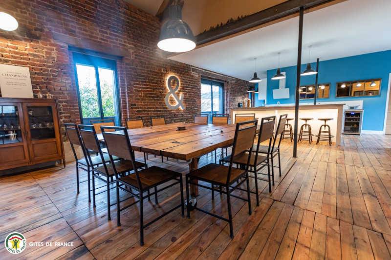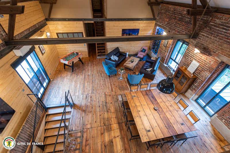 „Nous avons passé un séjour de Noël en famille pour lequel le gite est parfaitement adapté, nombreuses chambres, salle de bain et WC. Chacun avait son espace nuit. Pour la journée la pièce de vie est immense, bien répartie entre les espaces cuisine, table à manger, espaces de jeux et coin salon. La cuisine est très bien équipée pour préparer des repas pour 12 convives. L'aménagement de l'ensemble dans le style industriel approprié au lieu est magnifique, beaucoup de petits détails donnent une âme à ce lieu où l'on se sent bien. Les relations avec les propriétaires ont été fluides et cordiales.“