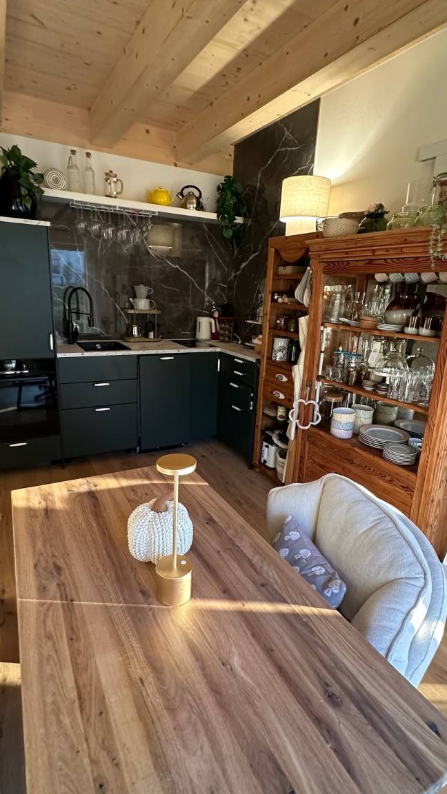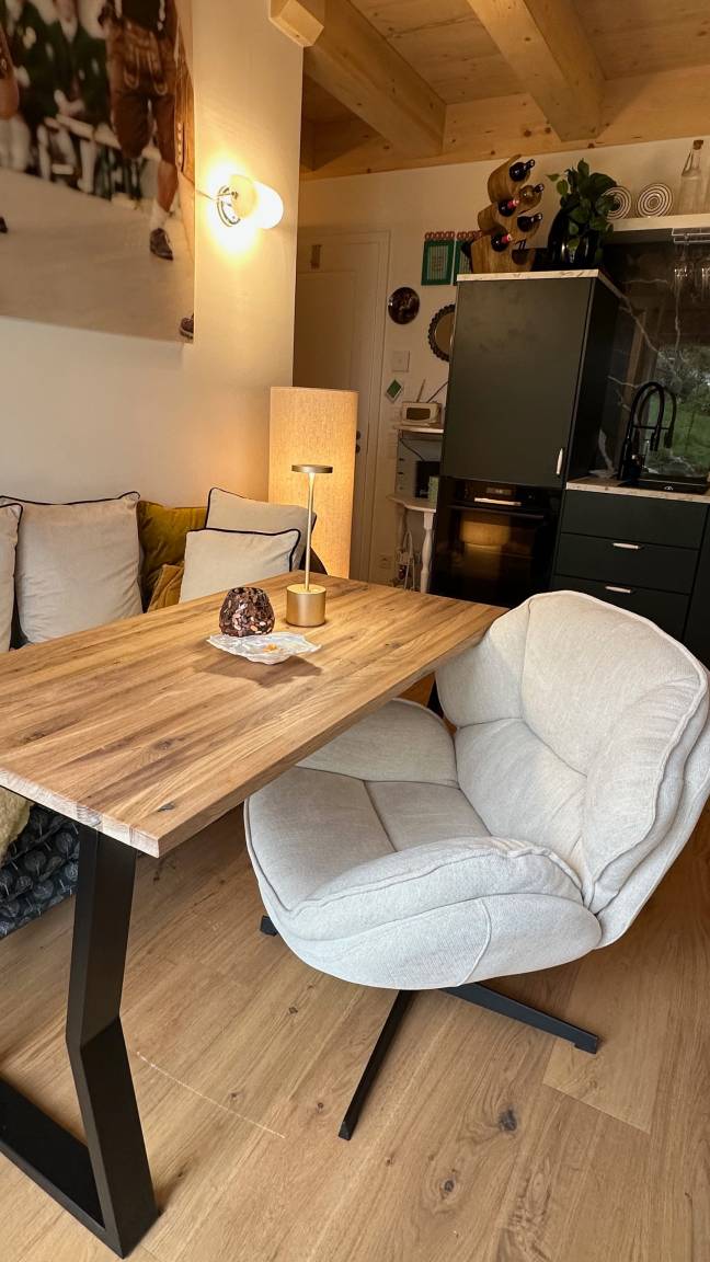 Weitere Annehmlichkeiten (gegen eine kleine Gebühr): Sie können unsere Waschmaschine und den Trockner nutzen, sich für den Tag im Schnee hochwertige Schneeschuhe ausleihen oder auch unseren Gasgrill oder auch den Pizzaofen (Gas). Weiter steht im Apartment eine kleine Auswahl regionaler Weine für Sie bereit.