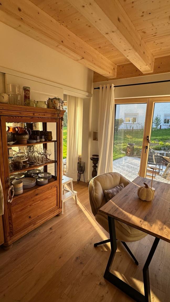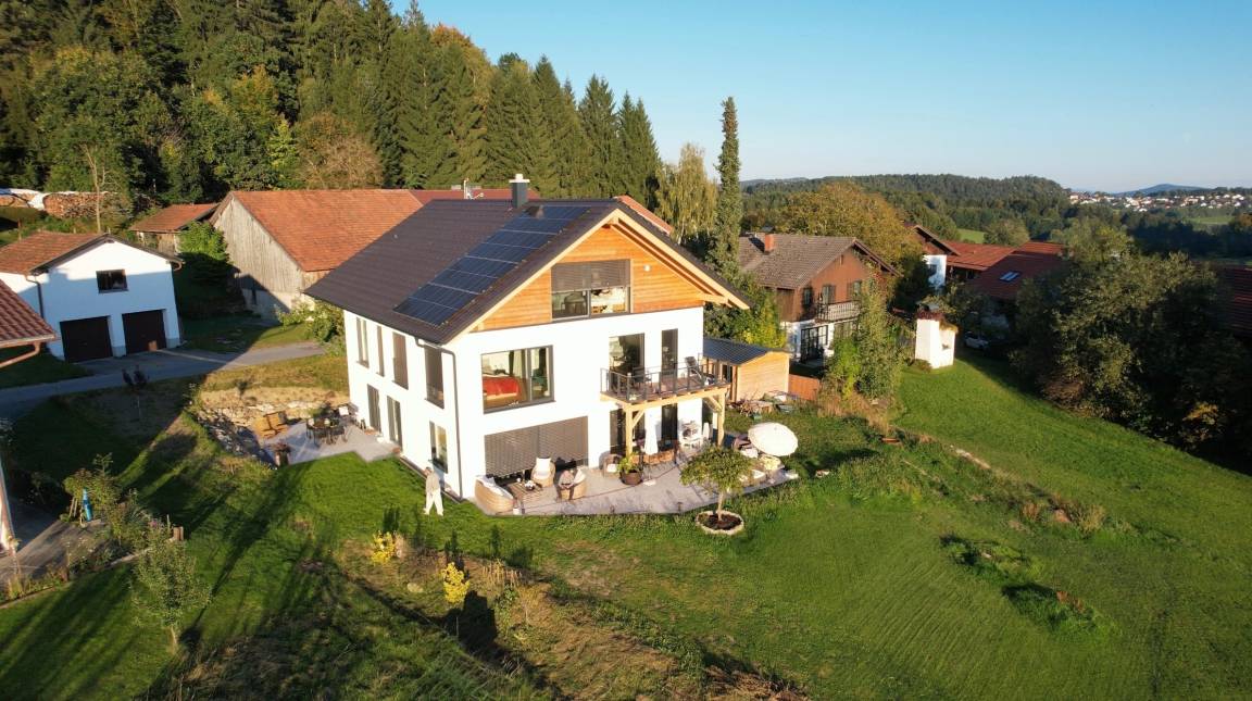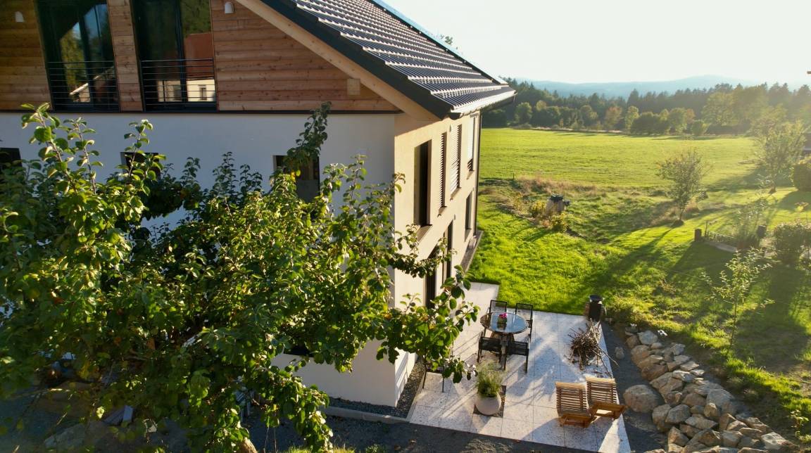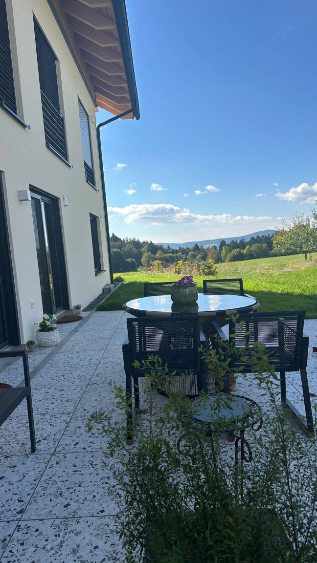 Wie schön, dass du zu uns gefunden hast! Auf dieser Seite möchten wir dir unser Appartement vorstellen, ein liebevoll eingerichteter Rückzugsort im Herzen des Bayerischen Waldes. Unsere Villa Barka ist ein Ort zum Wohlfühlen: stilvoll gestaltet, ruhig gelegen und umgeben von unberührter Natur. Wir vermieten unser Zuhause an Gäste, die Wert auf Achtsamkeit, Ruhe und eine geschmackvolle Atmosphäre legen. Entdecke, was dich hier erwartet und lass dich inspirieren zu deiner nächsten Auszeit inmitten einer einzigartigen Landschaft. Unser ökologisch und klimapositiv konzipiertes Haus wurde 2024 in moderner Holzständerbauweise fertiggestellt und überzeugt mit einem natürlichen, gesunden Wohnklima. Die hocheffiziente Dämmung und der nachwachsende Rohstoff Holz sorgen für besonders niedrigen Energieverbrauch und eine ausgezeichnete Umweltbilanz. Solarstrom aus unserer eigenen Photovoltaikanlage wird vor Ort gespeichert und versorgt das gesamte Haus zuverlässig mit sauberer Energie und sollte das einmal nicht ausreichen, beziehen wir garantiert zu 100% regenerativ erzeugten Strom. Und natürlich können Gäste ihr Elektroauto direkt bei uns komfortabel laden. Damit vereint unser Zuhause nachhaltiges Wohnen und echte Zukunftsfähigkeit für Mensch und Natur. Genießen Sie nach einem tollen Tag die wunderbare Regendusche, lassen Sie sich von den Flammen des elektrischen Kamins verzaubern oder lassen Sie den Tag auf der 35 qm großen Terrrasse ausklingen.