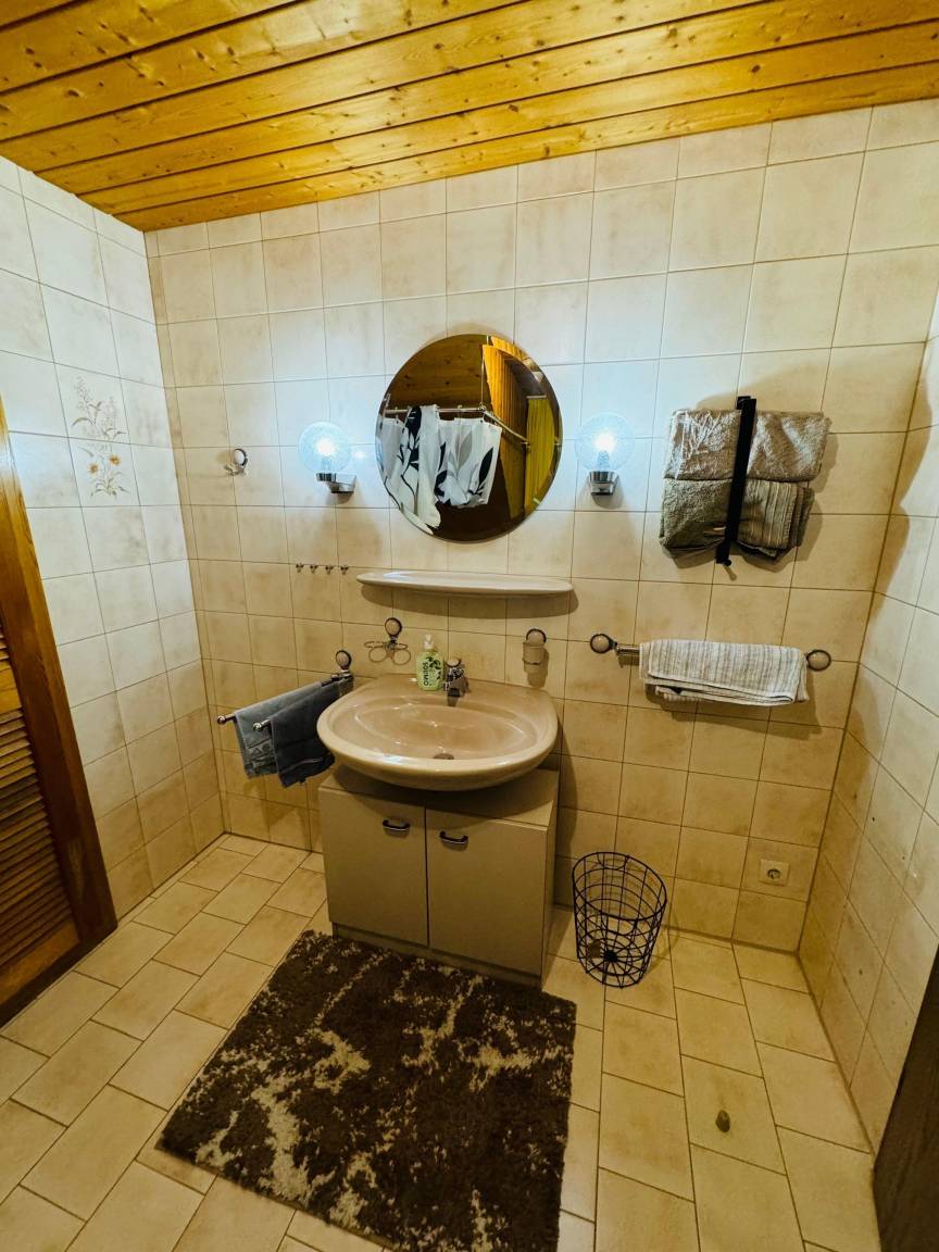 Unsere grosse, geräumige und komplett eingerichtete Ferienwohnung betreten Sie über einen privaten Eingang. Vom Wohnzimmer haben Sie einen wunderschönen Panoramablick auf die Berge.