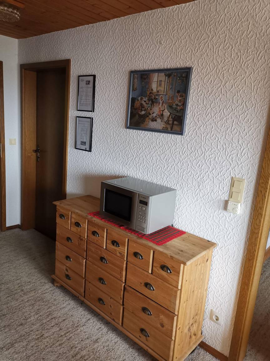 Die Wohnung bietet 5 Schlafplätze, bei einer Belegung mit 6 Personen können wir eine zusätzliche Matratze in die Wohnung legen. Pro Wohnung steht unseren Gästen ein kostenloser Parkplatz an der Unterkunft zur Verfügung. Vorraussichtlich ab 01.10.2023 bieten wir eine Lademöglichkeit für E-Fahrzeuge an (max 11 KW). Die aktuellen Gebühren erfragen Sie bitte in Ihrer Unterkunft. Unseren Gästen bieten wir täglich einen Frühstücksservice an. Getränke sind im Haus erhältlich, zudem ist die Benutzung von Waschmaschine & Trockner optional möglich.
