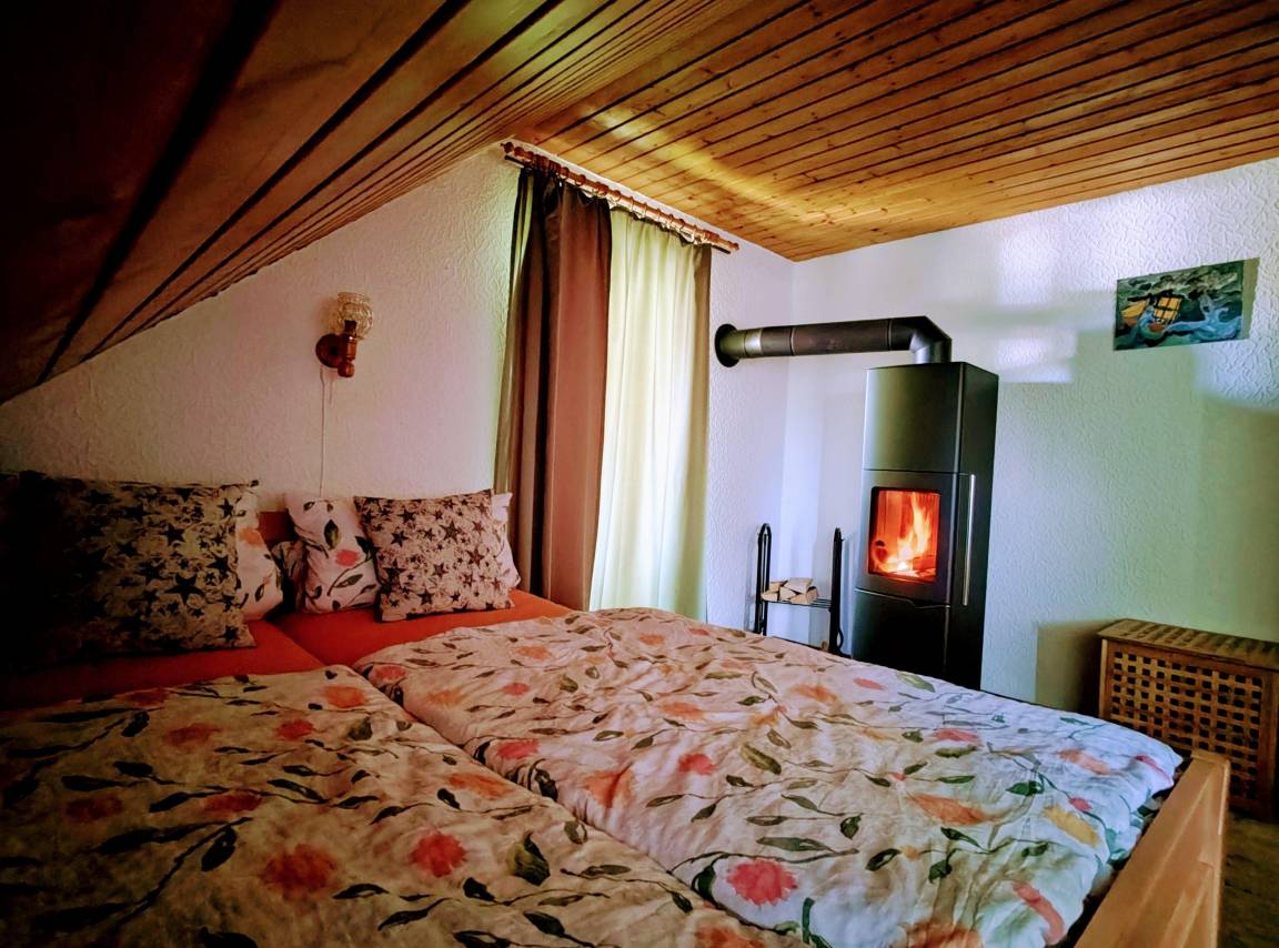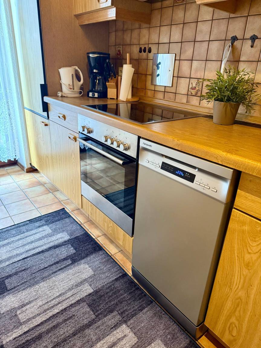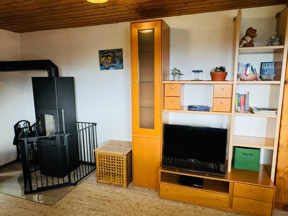 Ihre Wohnung verfügt neben einem Doppelbett über ein zusätzliches Schlafzimmer mit Etagenbett, Einzelbett und Kleiderschrank. Zudem erwartet Sie eine voll ausgestattete Küche mit modernen Einbaugeräten (Kühl/Gefrierschrank, Herd, Backofen, Spülmaschine, Kaffeemaschine, Toaster, Mikrowelle etc), ein großes gemütliches Badezimmer mit Badewanne & Dusche und ein sonniger, nicht einsehbarer Balkon in ruhiger Lage. Ein zentral in der Wohnung gelegener Kaminofen sorgt während der kalten Jahreszeit für angenehme Wärme und ein gemütliches Ambiente.