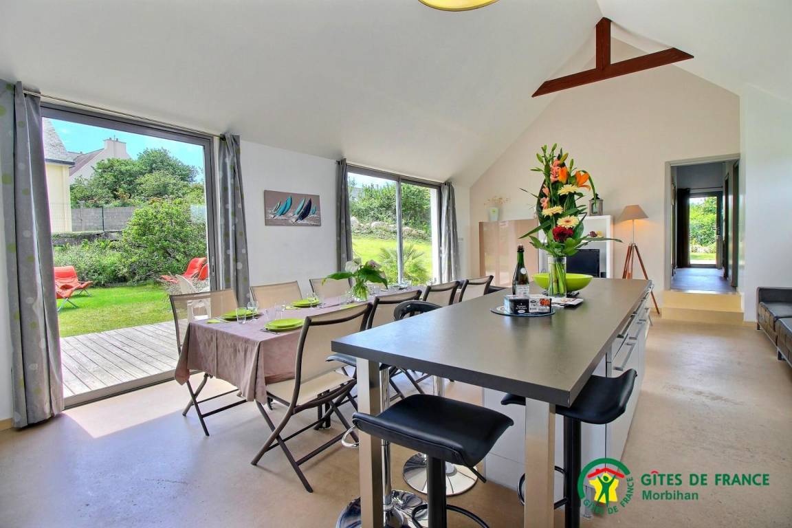„Gite agréable et fonctionnel, jardin clôturé, terrasse en bois et trampoline pour les enfants. Terrasse ensoleillée une grande partie de la journée, super pour manger dehors. A proximité immédiate d etel et de la plage.Les chemins de randonnée ou vélo sont au bout de l impasse, très pratique. Excellent séjour ensoleillé toute la semaine ! L hôte est arrangeant sur les heures départ et arrivée si possible.“