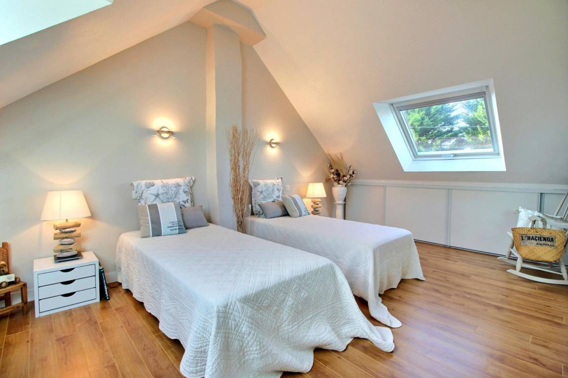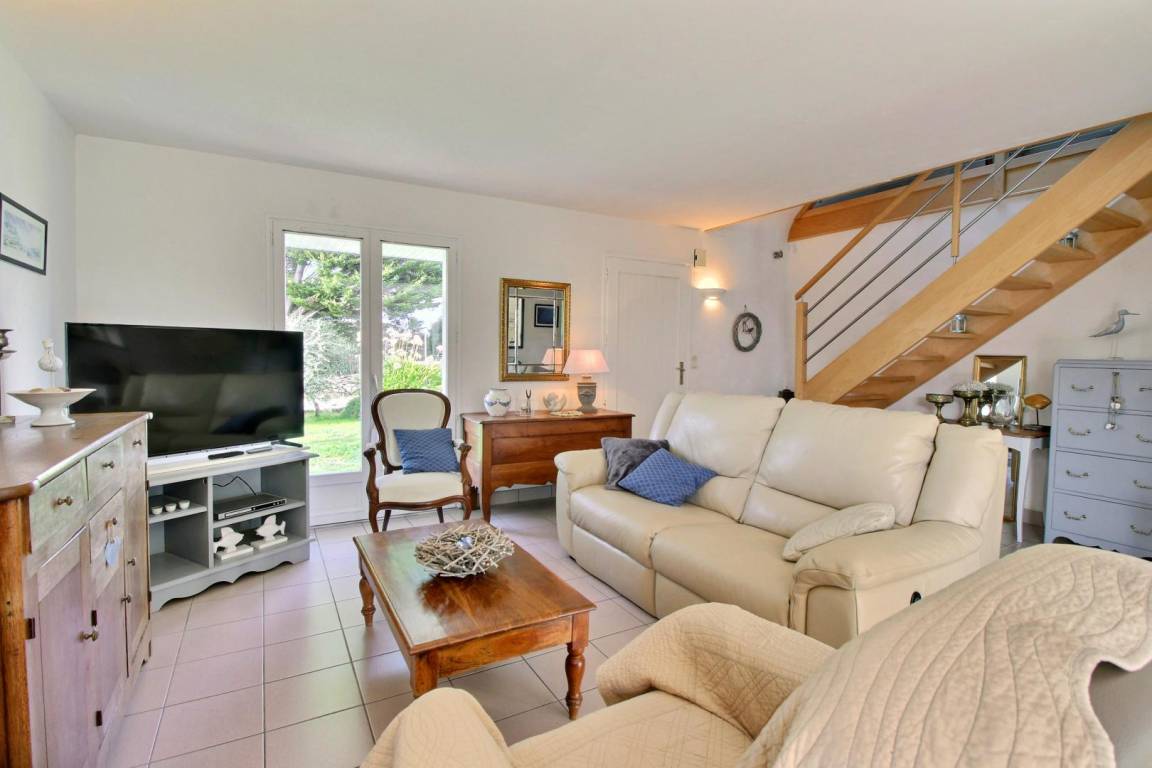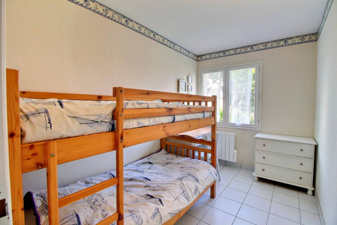 - Wohnzimmer und ausgestattete Küche, 2 Schlafzimmer (jeweils mit 1 140 x 190-Bett), 1 Schlafzimmer mit 2 90 x 190-Betten, darunter 1 Etagenbett, ein Badezimmer und eine separate Toilette.