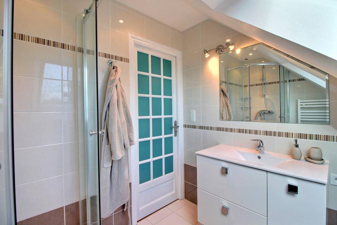 Im Außenbereich profitieren Sie von einem großen Garten, einer 40 m² großen Terrasse und Parkplätzen in der Kiesauffahrt (innerhalb des Grundstücks).