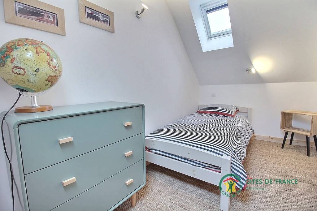 Im Obergeschoss befinden sich zwei Schlafzimmer für zwei Personen, das erste verfügt über ein 160 x 200-Bett und das zweite über zwei 90 x 190-Betten.
