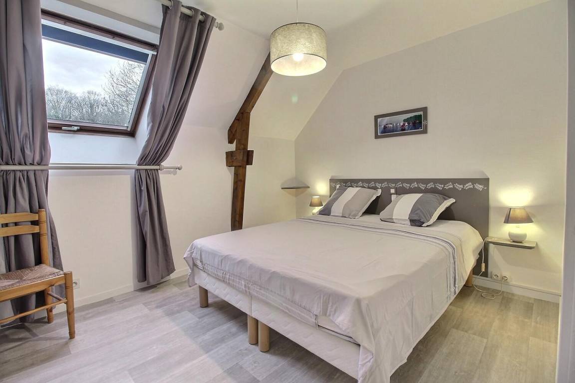 Die Küstengemeinde Erdeven besitzt ein herrliches Dünengebiet von 300 ha Fläche, 6 km Strände mit feinem Sand, 80 km markierte Wanderwege und zahlreiche Megalithen-Megalithen-Standorte. Ferienhaus im 20 ha großen Schlosspark des Schlosses Keravéon, in einem ehemaligen Pferdestall. Genießen Sie die Ruhe auf dem Land und die Nähe zum Ozean. Erdgeschoss: Flur, Wohnbereich mit Essbereich und voll ausgestatteter Kochecke, WC. Stockwerk: 2 Schlafzimmer mit 1 Doppelbett 160x200, und 2 Betten 90x190, Badezimmer mit WC. Gemeinsam: 20 ha großer Park mit Hochseilgarten und Trimm-Dich-Pfad, Spielplatz für Kinder von 4 bis 12 Jahren. Ferienhaus in einem Waldgebiet: kein Grill. Ferienhaus im ehemaligen Pferdestall des Schlosses Keravéon, hier finden Sie die friedliche Ruhe auf dem Land und die Nähe zum Meer. Auf Anfrage: Babybett + Hochstuhl. Auf Anfrage: Tischwäsche 8€/Aufenthalt.