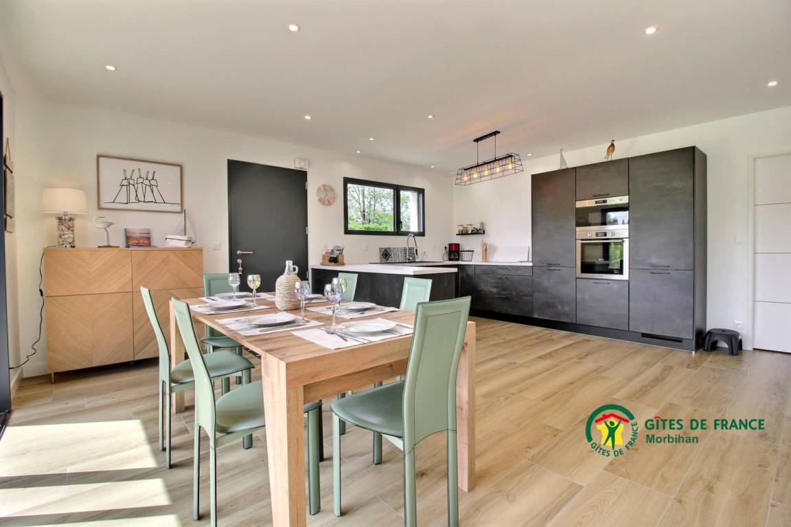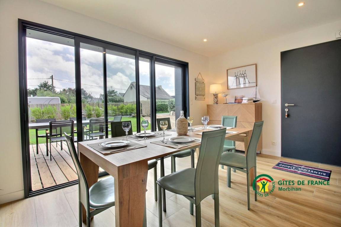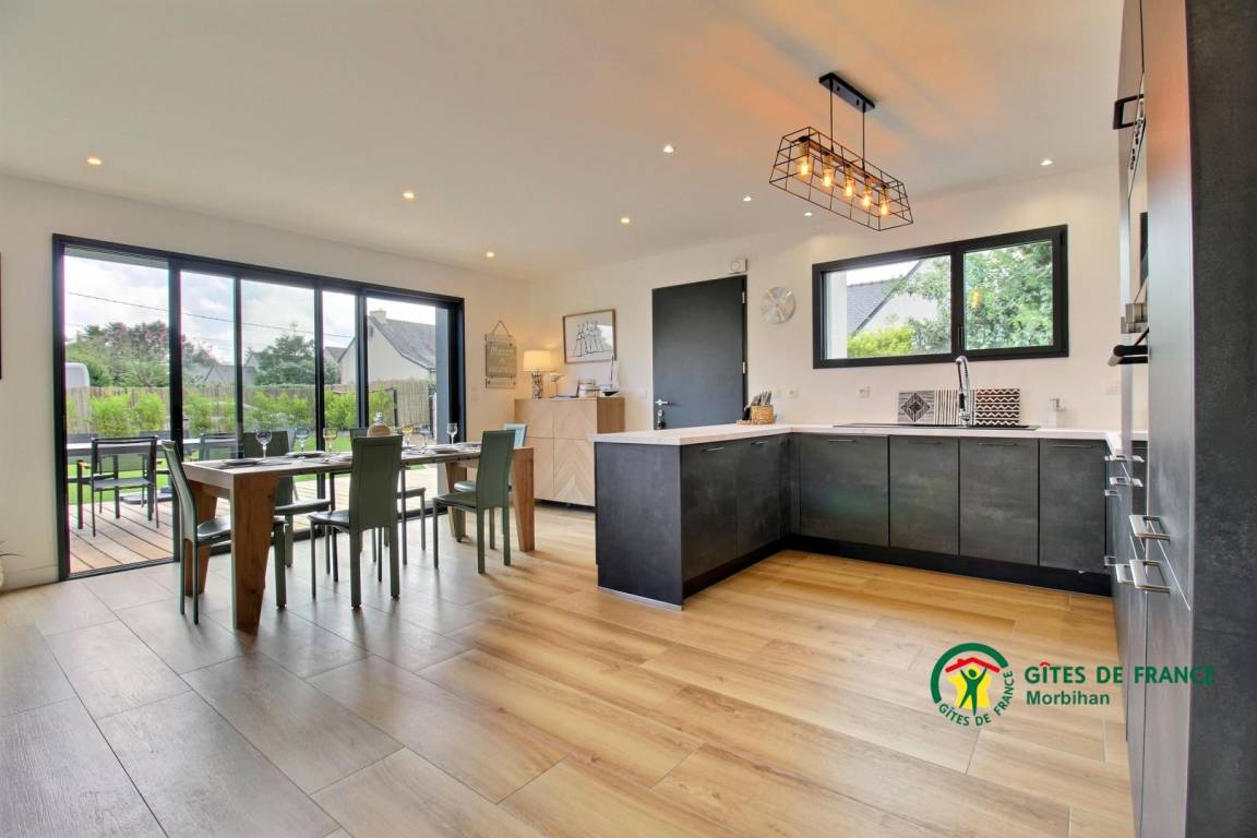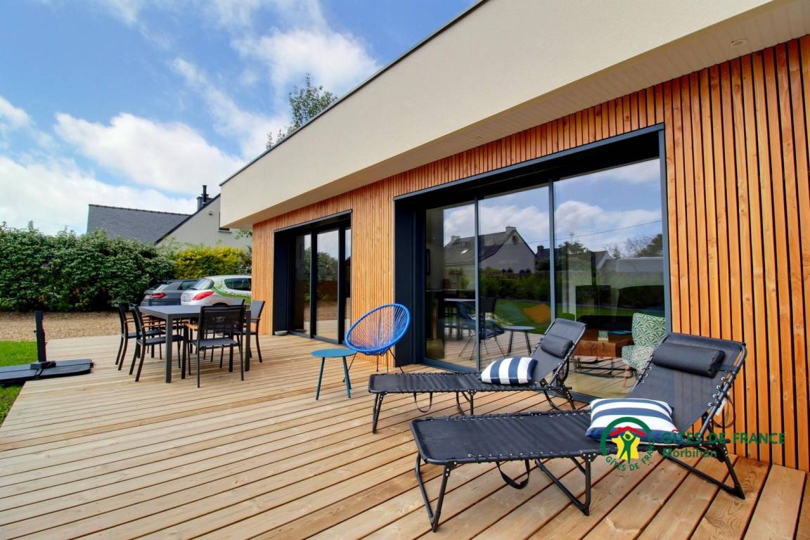„Super Aufenthalt in einem top modernen Haus (1 Jahr alt). Mit ALLEM ausgestattet. Großer eingezäunter Garten. Große Terrasse mit Möbel. Grill. Kinderschaukel und Klettergerüst uvm. Geräteschuppen mit 4 Fahrrädern zur freien Nutzung!Alles sehr ruhig gelegen und doch nur 1km zum Strand und 1km nach Erdeven zu geschäften auf geschützten Fahrradwegen! Perfekt!“
