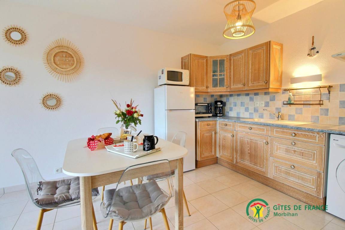 „Logement très lumineux et très propre. Bien placé quant à sa situation pour visiter le Morbihan avec ses panoramas extraordinaires. La literie est confortable. Il y a tout pour passer un excellent séjour. Le petit jardinet est très appréciable pour nos amis à quatre pattes. Nous y avons passé un super séjour.“
