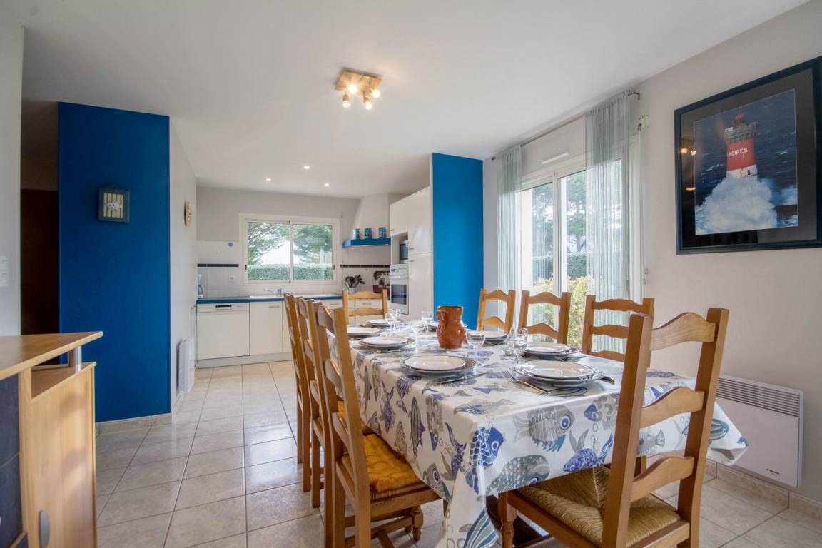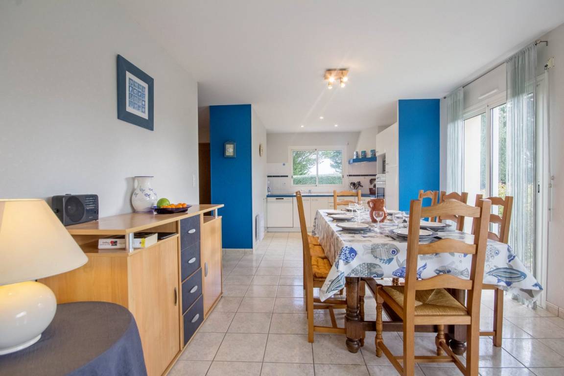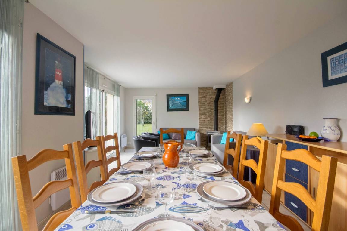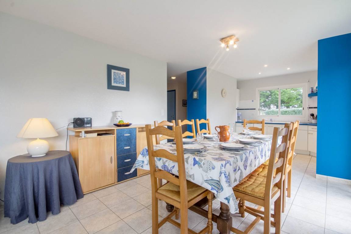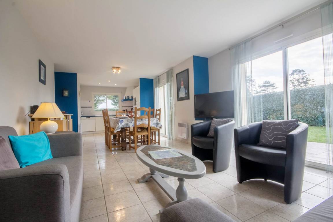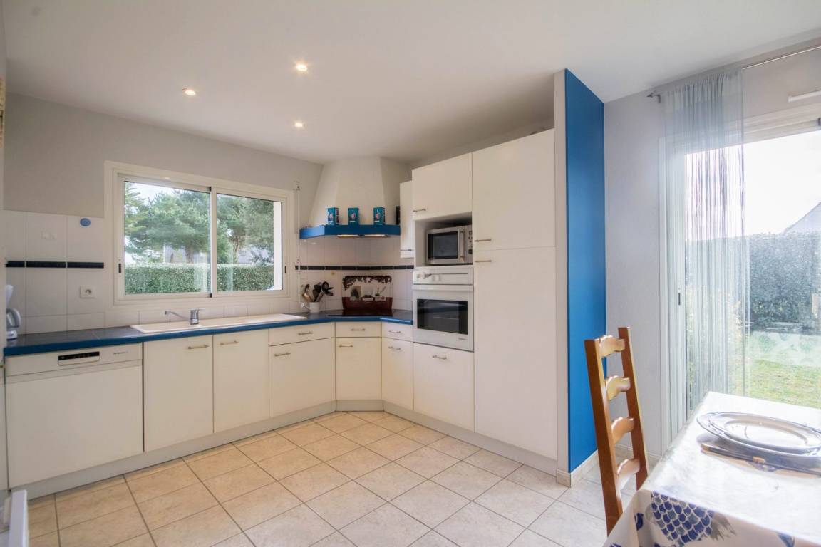 Verbringen Sie Ihren Urlaub mit der Familie oder mit Freunden in dem beliebten und sehr lebendigen Badeort Erdeven und entdecken Sie die Region Süd-Morbihan. Zwischen der Halbinsel Quiberon und dem Meeresarm Ria d'Etel erstreckt sich diese Gemeinde entlang der Küste, 8 km herrliche Landschaften und abwechslungsreiche, natürliche und geschützte Gebiete. Strände mit goldenem Sand und Dünen, viel Platz für Wassersportarten wie Tauchen, Surfen, Kitesurfen oder Windsurfen. Erdeven ist auch einer der großen Megalithen-Standorte der Bretagne: Menhir-Steinreihen und Dolmen, kostenfrei zugänglich das ganze Jahr über. Der Strand Kerbillio ist nur einige Minuten vom Haus entfernt, Faulenzen und Badespaß und ein herrlicher Blick auf die Halbinsel Quiberon und Belle-Île-en-Mer. Das freistehende Ferienhaus besitzt einen geschlossenen Garten und bietet allen Komfort eines modernen Hauses. Im EG: ein Wohnbereich 38m² mit Küche/Esszimmer/Wohnzimmer, ein WC und ein Schlafzimmer (1 Bett 140) mit eigenem