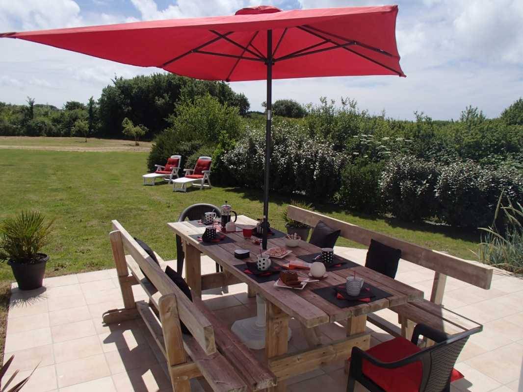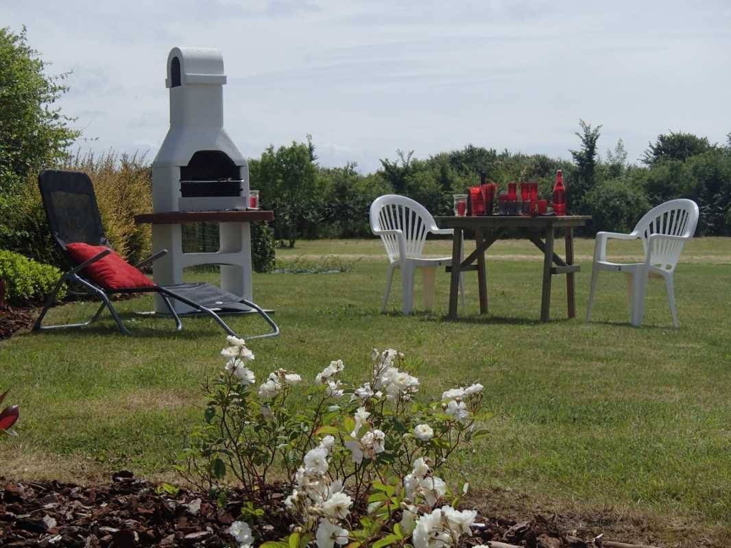 Außenbereich: Garage, privater Garten von 1600 m², Terrasse, Gartenmöbel, Grill mit Kamin. Unabhängiges Ferienhaus neben einem anderen Ferienhaus in einem Weiler, 1,5 km von Erdeven entfernt.