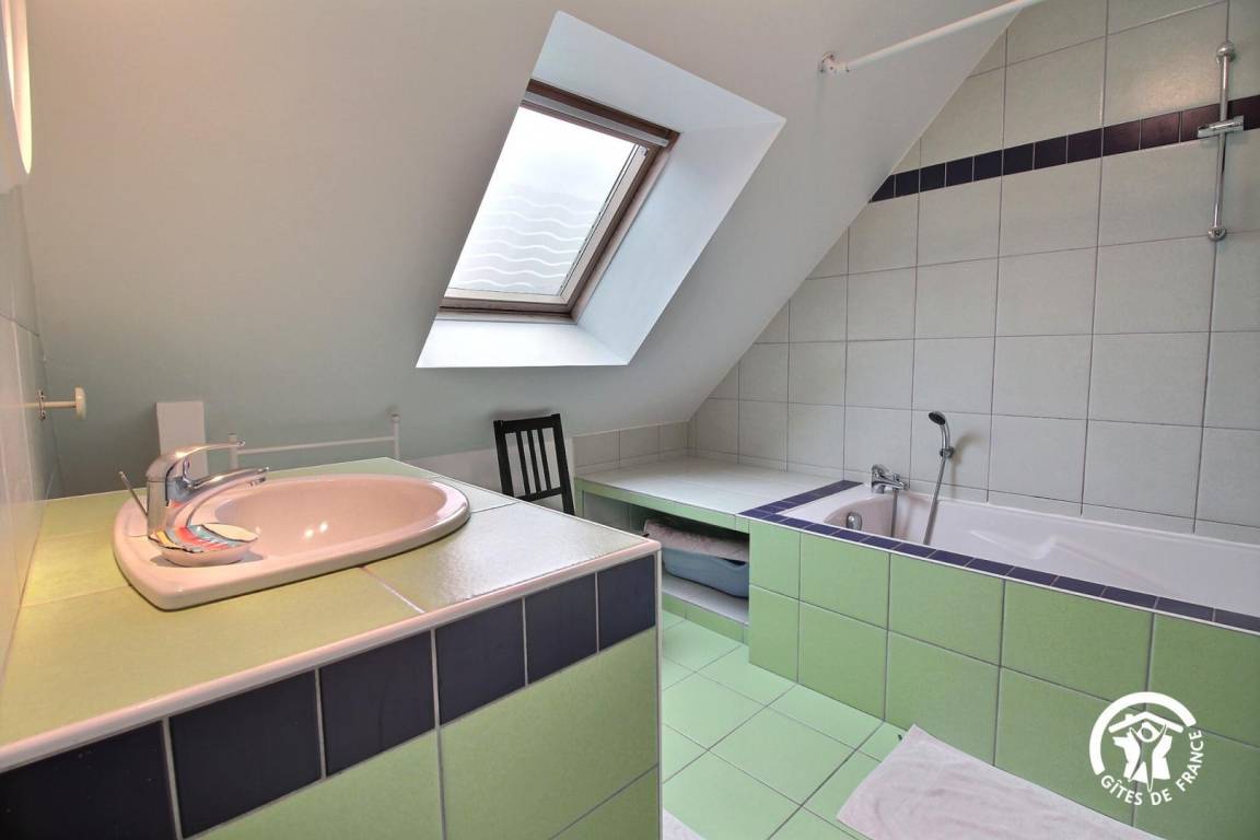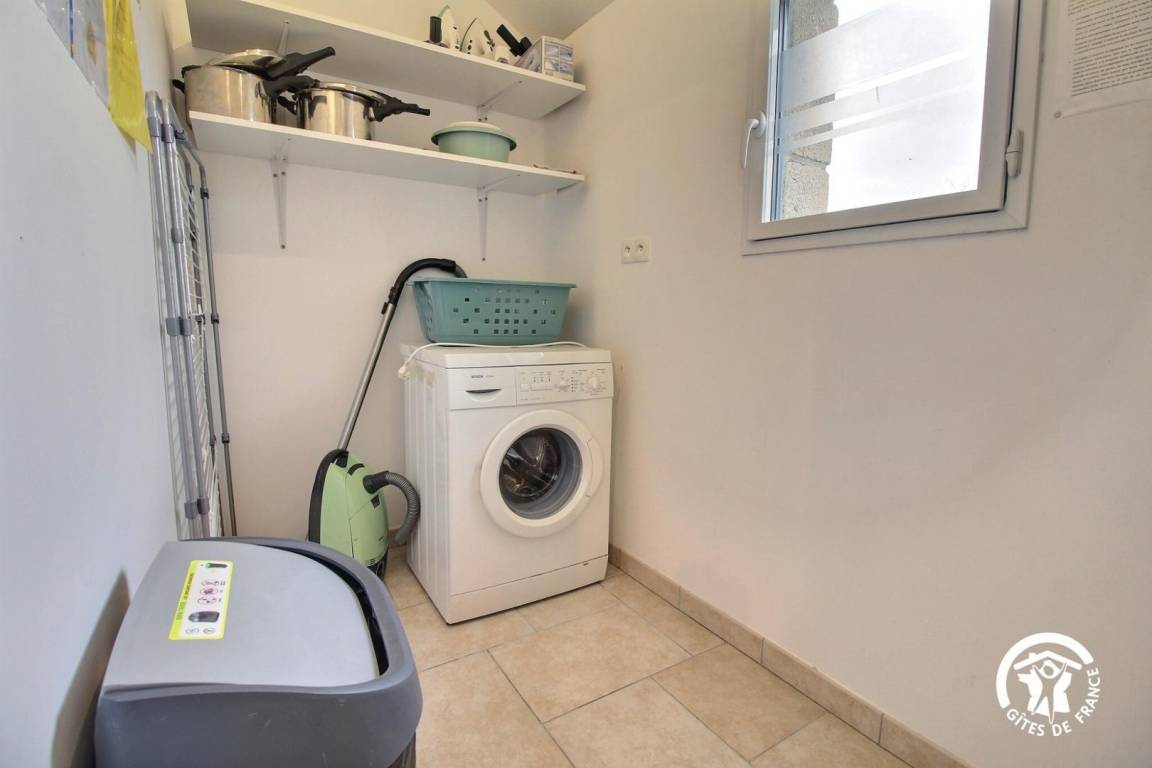 „Gîte très calme proche de la plage. Beau jardin. Bel environnement naturel. Dans l'ensemble de bonnes prestations, mais de petites choses à revoir (pas de sèche-linge, TV mal placée et inamovible, ustensiles de cuisine pas adaptés à la plaque électrique (fonds bombés)) .“