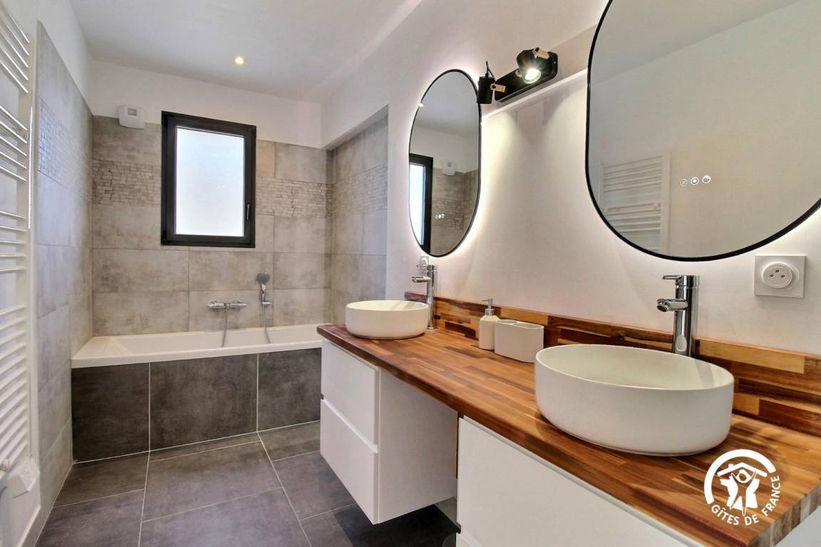 „Nous avons séjourné dans ce logement quelques jours. Coup de coeur sur cette maison, elle est superbe! Très bien équipée, tous les ustensiles y sont présents, de nombreux jeux (molky, jeux de société, raquettes, piscine extérieure..), très grand jardin clôturé qui est pratique si vous avez un chien. Les propriétaires sont très accueillants et disponibles pour leurs hôtes.“
