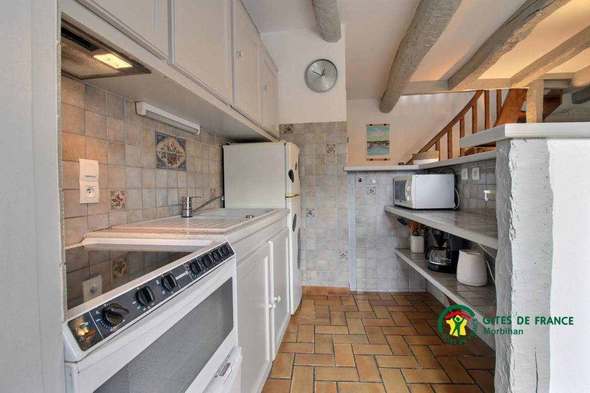 Diese charmante Steinvermietung bietet im Erdgeschoss einen zum Wohnraum offenen Küchenbereich/Wohnzimmer mit Kamin (der erste Ausbruch wird angeboten), sowie ein separates WC mit Waschbecken. Im Obergeschoss befinden sich zwei Schlafzimmer, das erste mit einem 160x200-Bett, das zweite mit einem 140x190-Bett. Auf dieser Ebene finden Sie ein Badezimmer und eine separate Toilette. Draußen genießen Sie eine geschlossene Südterrasse mit Gartenmöbeln, Grill, Liegestuhl. Waschküche in der Garage. Angrenzende Vermietung an Ferienhaus 56G54144. Gemeinsam: Angrenzendes Grundstück von 1.000 m² mit Portikus.