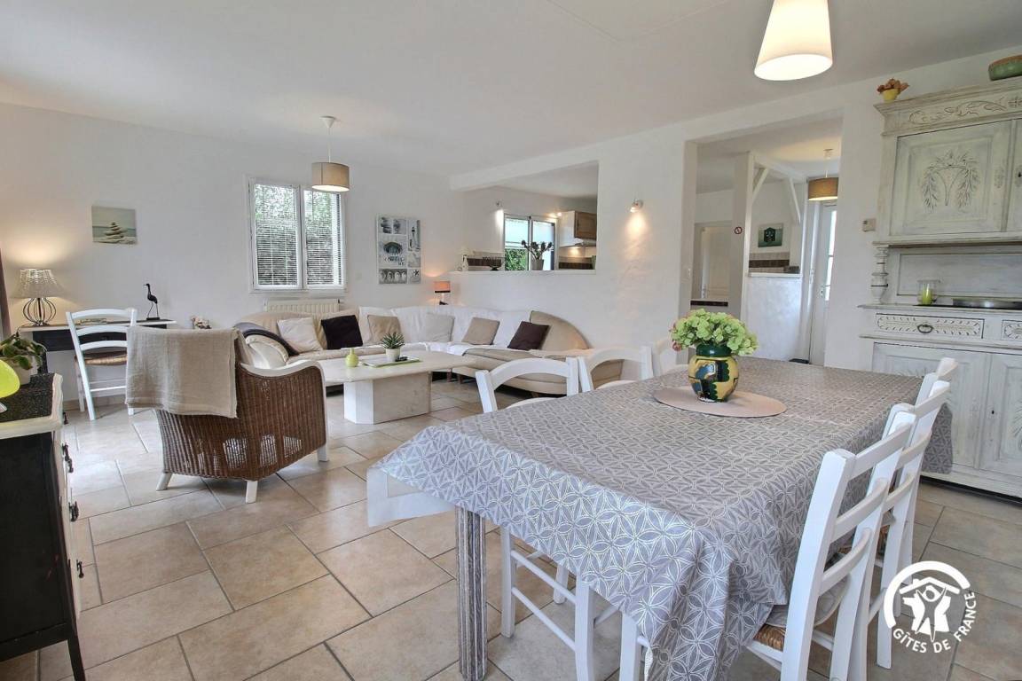 Detached single storey gite near another gite in a hamlet 1.5 km from Erdeven. Living room, kitchen corner sitting area, 3 bedrooms (1 double bed, 4 singles), bathroom, wc,oil fired central heating. Garage. Private enclosed garden 1700 m², terrace, garden furniture, BBQ. Situated in a pretty hamlet near the sea and walkers' tracks, the cosy interior of this delightful house makes a perfect change of scenery for a relaxing holiday.
