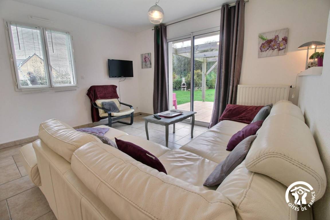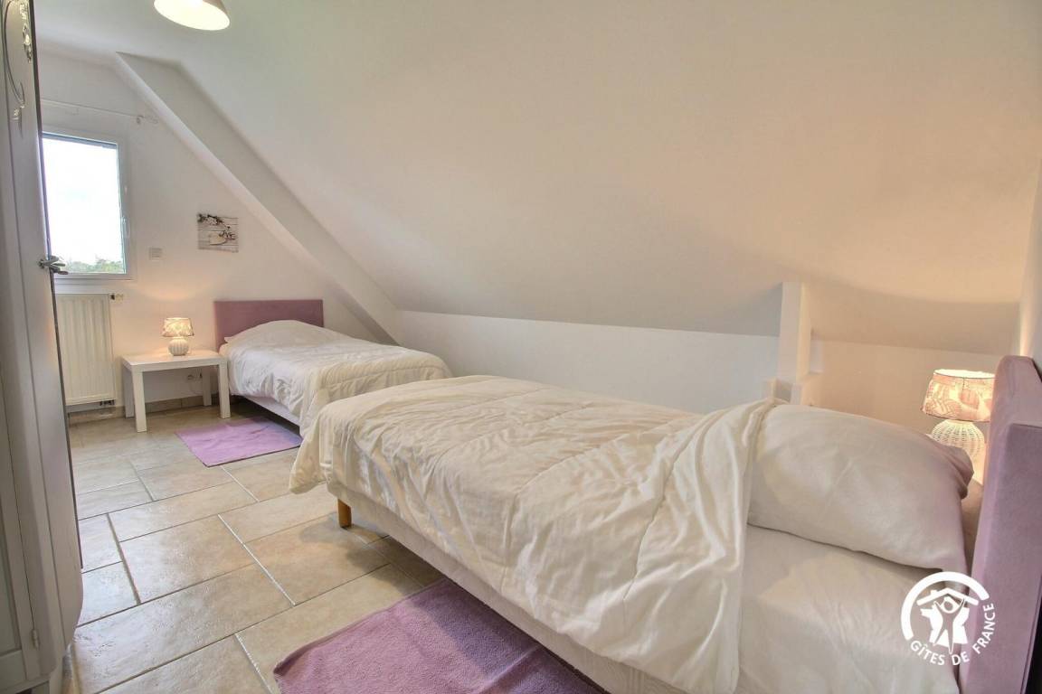 Detached gite in a hamlet 1.5 km from Erdeven. Living room, kitchen corner sitting area, 4 bedrooms (2 double beds, 4 singles, 1 child bed), shower, bathroom, wc, gas central heating. Garage. Private enclosed garden 1000 m², terrace, garden furniture, BBQ. Situated in a pretty hamlet near the sea and walkers' tracks, the cosy interior of this delightful house makes a perfect change of scenery for a relaxing holiday.