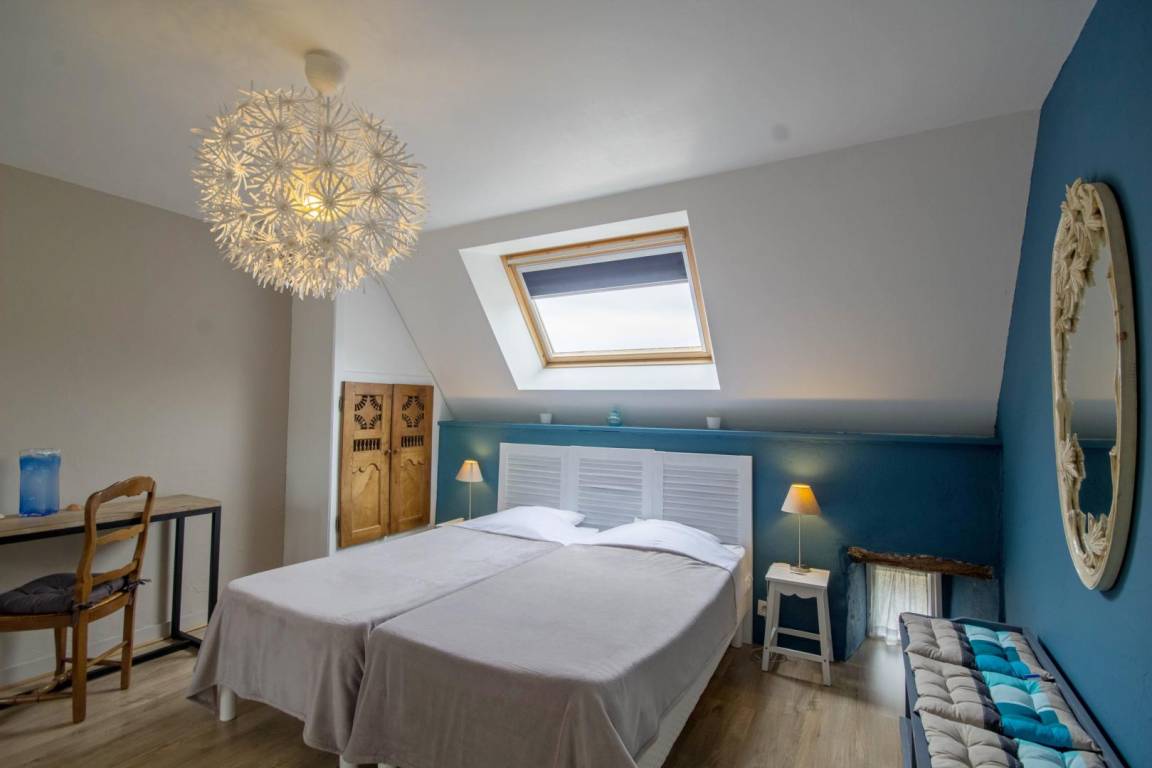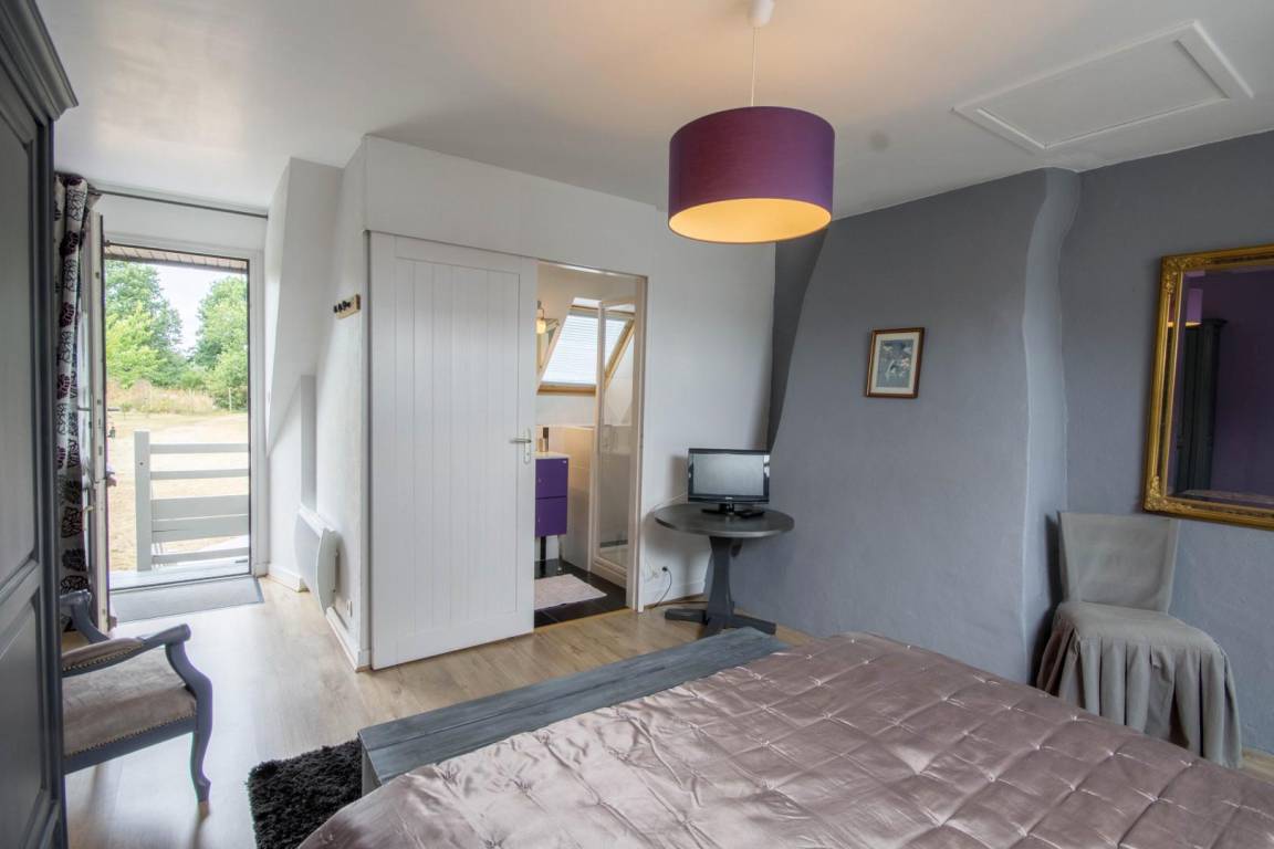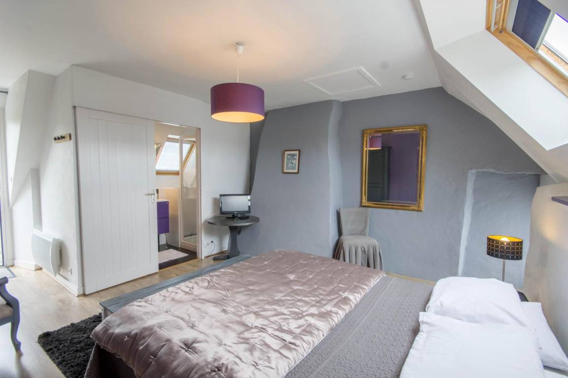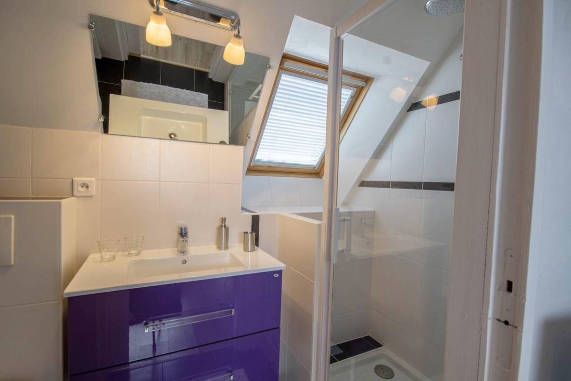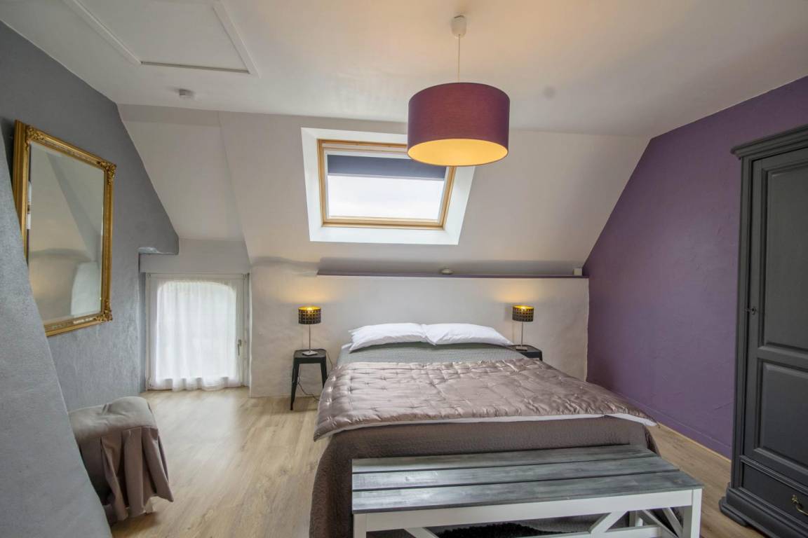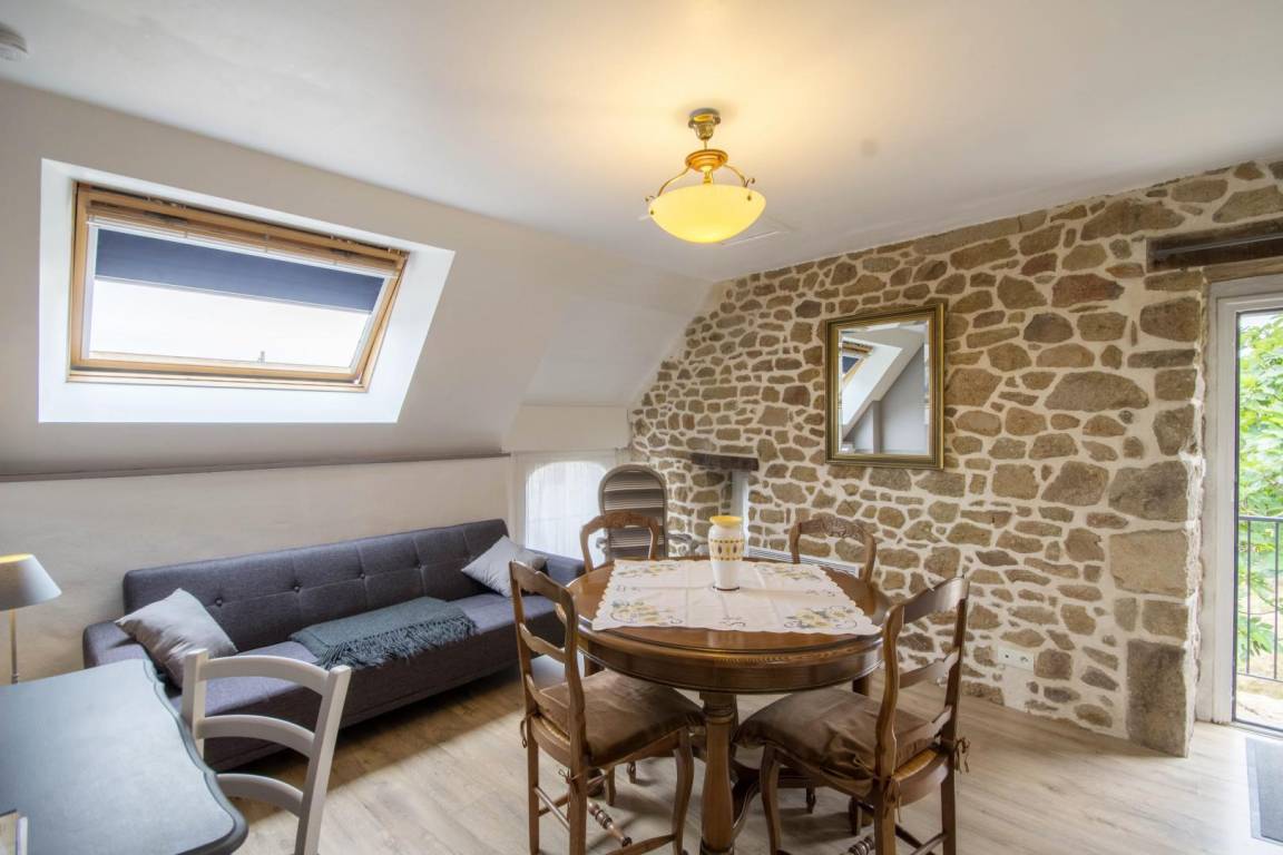 Morbihan, the sea, the rugged coastline... This gite is 4km from the well-known, long, sandy beach of Erdeven and within easy reach of the Gulf of Morbihan, Carnac with its standing stones and the Quiberon peninsula. Enjoy its peaceful location bordered by footpaths, cycle tracks and bridle paths. An upstairs gite for 4 people on the first floor of an 18th century longhouse. Character living room with small kitchen area. Sliding door to Bedroom 1 : twin beds, en-suite shower room with WC. Bedroom 2 (only accessible from outside) : king-size bed, en-suite shower room with WC. Patio with patio furniture and garden shared with ground floor gite no 56G54103. Parking within the property. Use of owner's tumble drier. Please contact owner regarding pets.