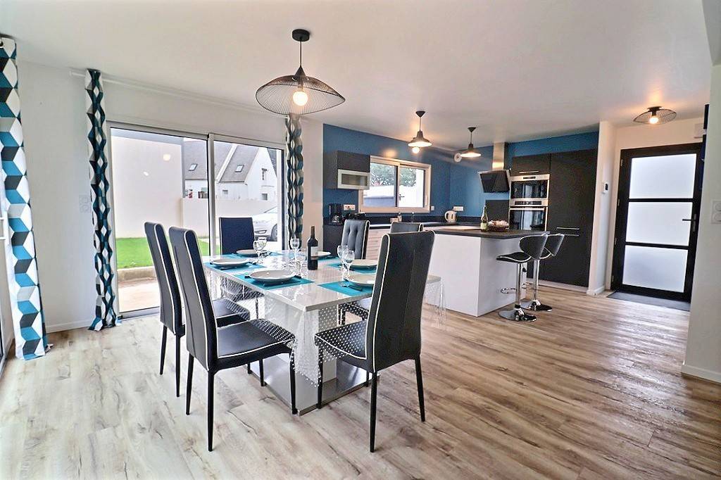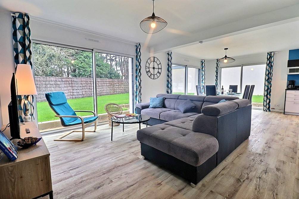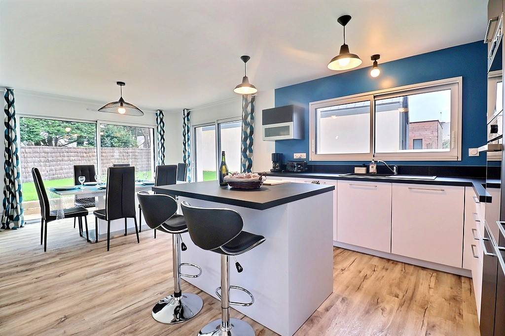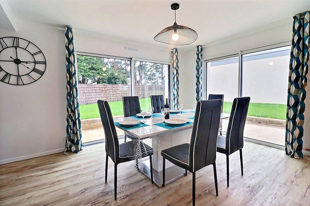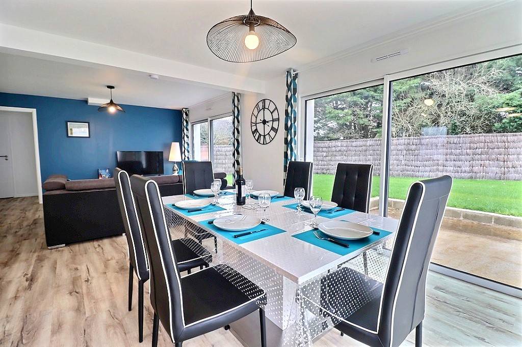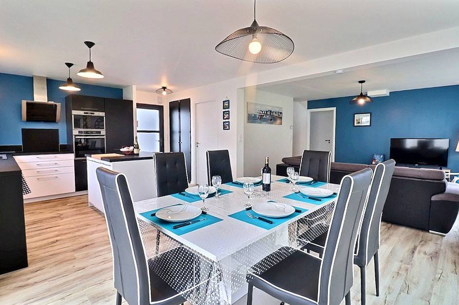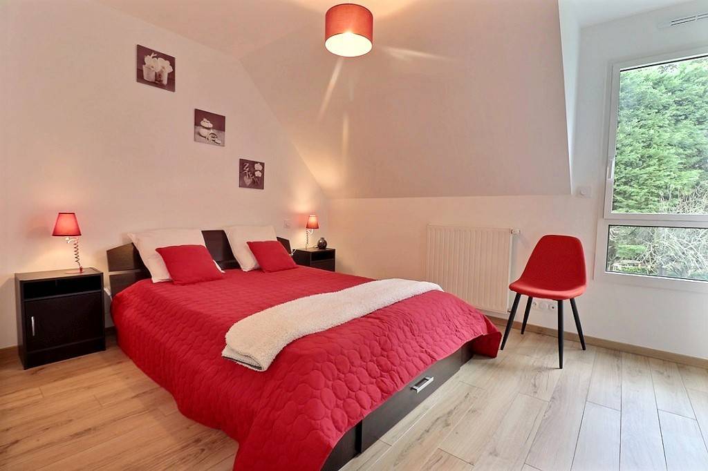 Das Ferienhaus ist ein wunderschönes, modernes Haus, geräumig und hell, gelegen in der Ruhe einer kleinen Sackgasse. Im Erdgeschoss erwartet Sie ein großes Wohnzimmer mit ausgestatteter Küche, die zum Wohnzimmer und Wohnzimmer hin offen ist. Außerdem auf dieser Ebene: ein großes Schlafzimmer (1 160-cm-Bett), ein Badezimmer, eine Toilette mit Waschbecken und eine Waschküche. Im Obergeschoss: 2 schöne Schlafzimmer (2 140-cm-Betten), ein Badezimmer mit Dusche und Badewanne und eine separate Toilette. Draußen: Sie profitieren von einem umzäunten Grundstück von 500 m² mit einem Garten von 280 m², einer Terrasse, einem Innenhof zum Parken von 2 Autos und einer Garage. Vierzehntägige Formel im Sommer