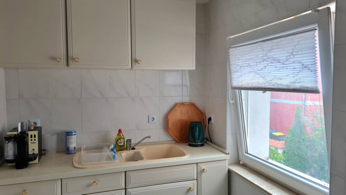Die Wohnung erstreckt sich über 2 Etagen, oben ein Schlafzimmer und das geräumige Bad mit großer Eckbadewanne, unten das zweite Schlafzimmer, das Wohn- und Schlafzimmer sowie die Einbauküche.