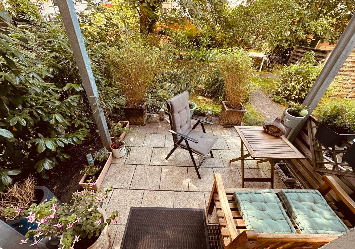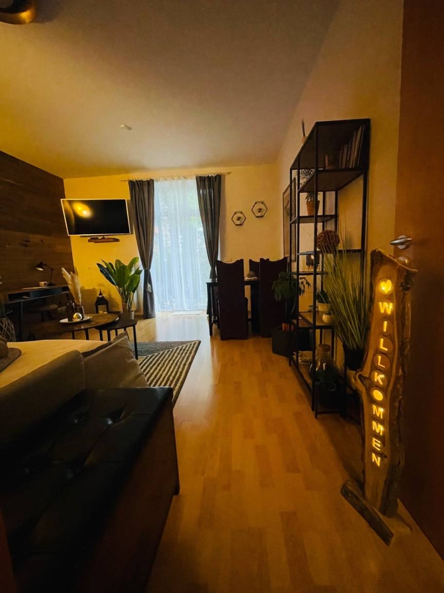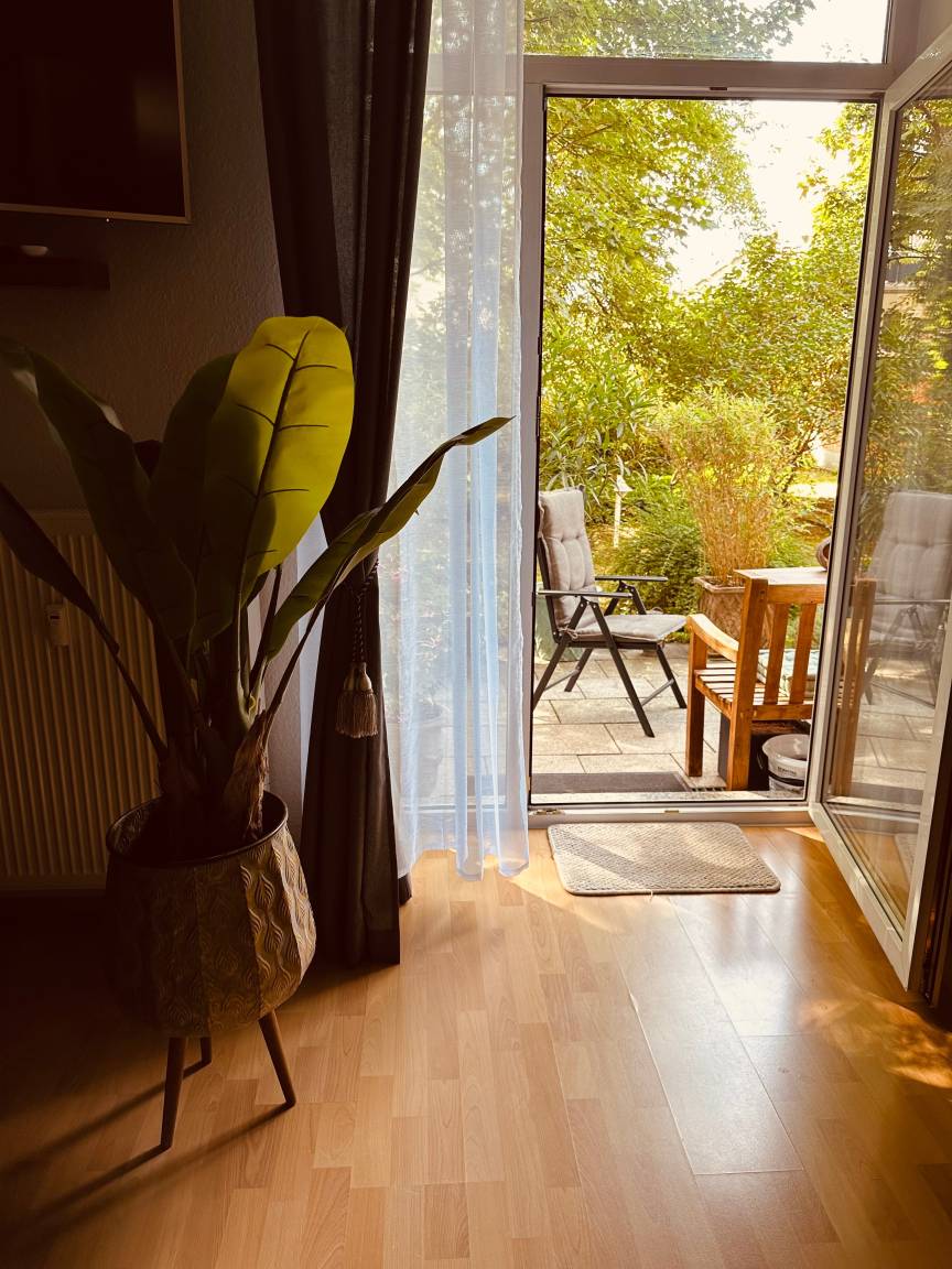 Eine liebevolle Einrichtung (Vollausstattung: abgetrennte Küche, Wohnzimmer, Schlafzimmer, Badezimmer) sowie der angrenzende Balkon/Terrasse in den Garten laden zum Verweilen und Wohlfühlen ein. Zum bekannten "Zugbahnhof" mit diversen Kultur - , Event und Kreativangeboten gelangt man ebenfalls in 8-10 Gehminuten.