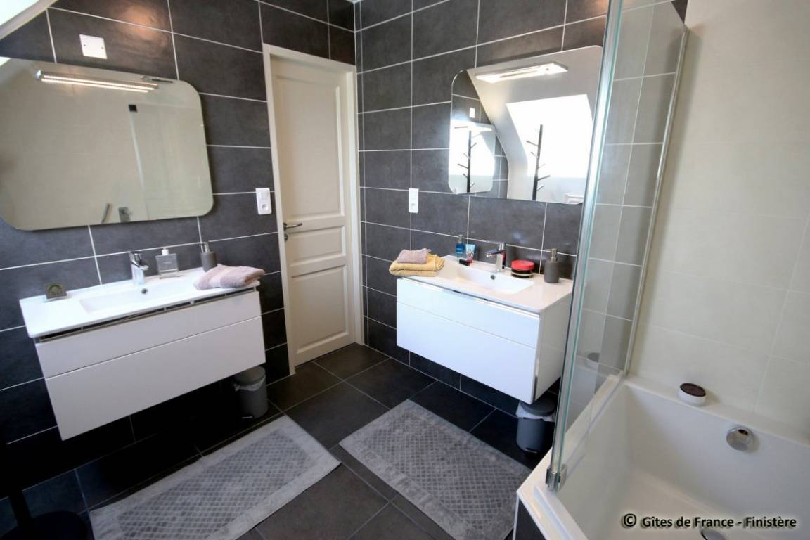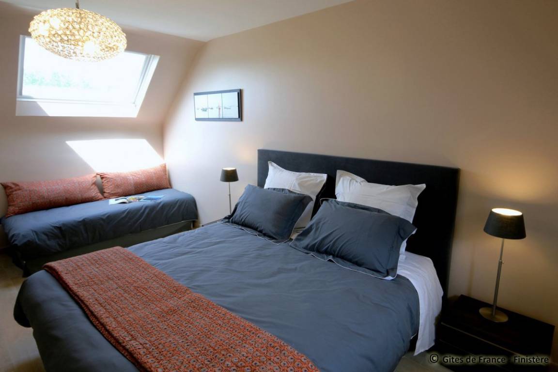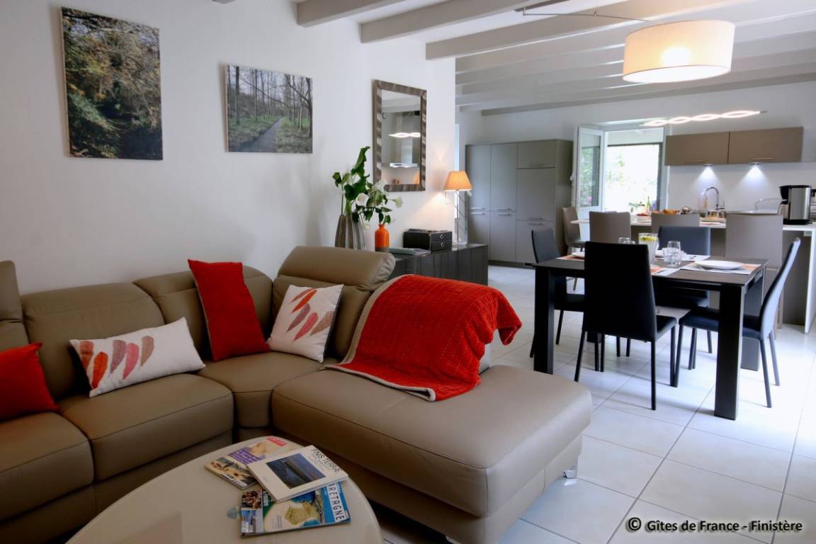 „Le gite est très calme, joli, fonctionnel, et idéalement situé. Quel bonheur de faire sa séance de yoga dans un jardin remarquable, au milieu du bruissement des feuilles. Il est possible de faire chaque soir de belles promenades sur les sentiers de la propriété, où est situé le gîte, pour aller à la rencontre des chevreuils. Les hôtes sont d’une exquise gentillesse, disponibles pour partager des itinéraires de découverte du patrimoine ou de randonnées, ou pour nous montrer le prodigieux travail de broderies des anciens costumes bretons. Mention spéciale à la pelouse, qui permet de belles siestes a l’ombre des arbres.“