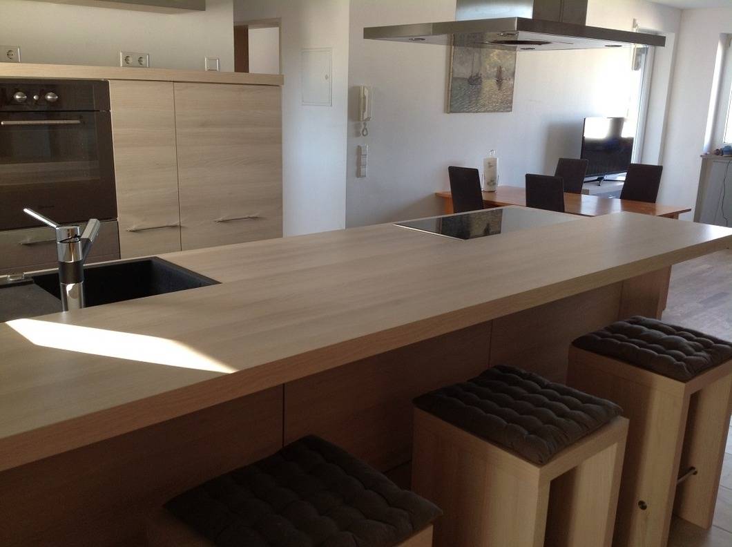Offener Wohn-Essbereich mit großzügiger, hochwertiger Küche, großzügig ausgestattet.