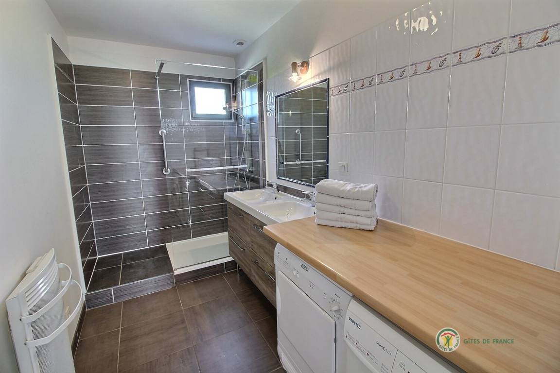 „BonjourNous avons passé un excellent séjour en famille: Très bon accueil et arrangeante (merci pour la bouteille de cidre); logement propre (hormis le four mais cela devait être le précédent locataire); très bonne literie; piscine couverte et sauna TOP; assez de vaisselles seule chose, manque un peu de poêle pour les galettes et crêpes bretonnes; très bien située. JE RECOMMANDE.“