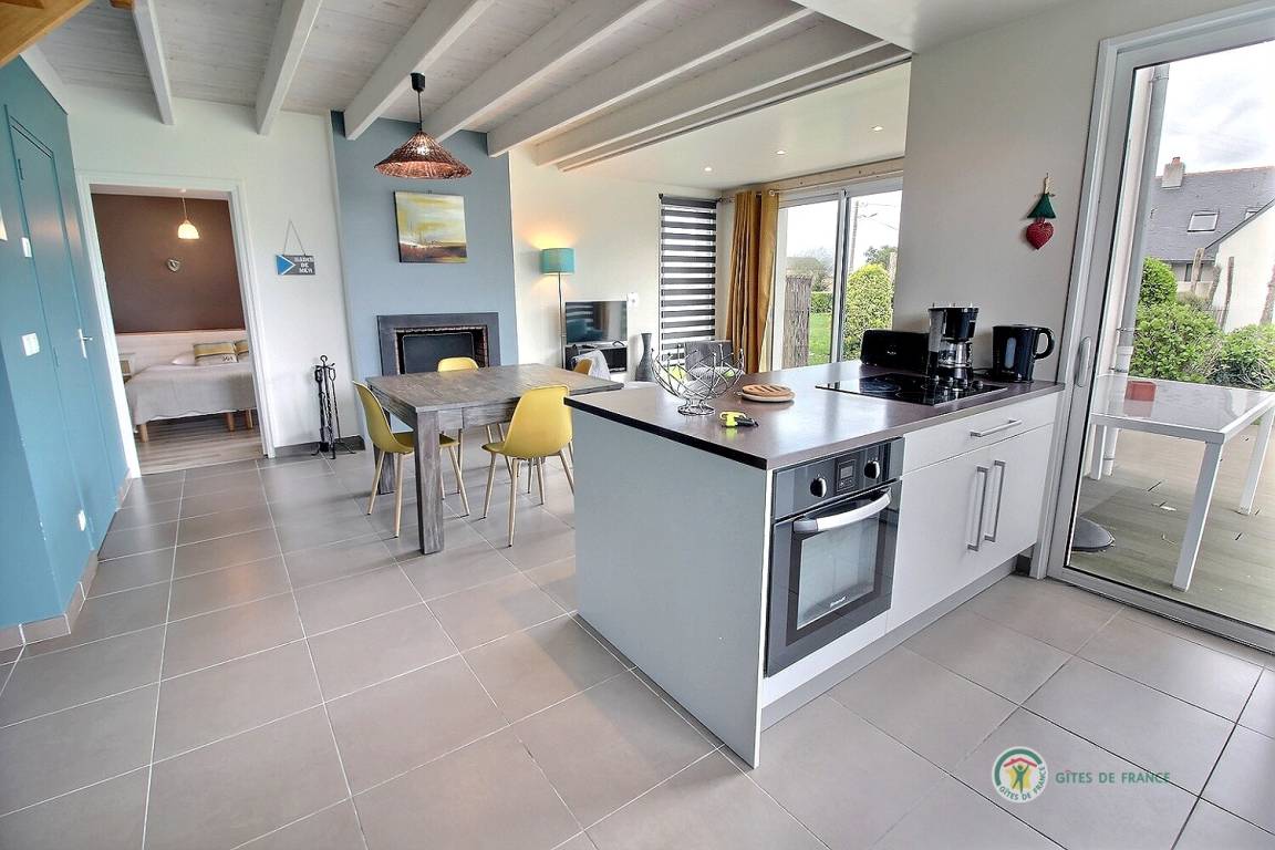 Ihr Ferienhaus, angrenzend an 22G350172 umfasst im Erdgeschoss: gemütliches Wohnzimmer (Kamin-Flachbildschirm-TV mit DVD - Player), ein gut ausgestattete Küche mit Mittelinsel, Bad mit Dusche, WC, einen Schlafzimmer (1 Bett 160x200). Im Obergeschoss: ein Schlafzimmer im Zwischengeschoss (2 Doppelbetten 80x200). Private Terrasse. Profitieren Sie kostenlos vom sehr komfortablen Wellnessbereich mit beheiztem Innenpool und Sauna, die allen Urlaubern im Gîtes du Pêcheur zugänglich ist. Kinder treffen sich gerne auf dem Spielplatz und spielen gemeinsam Tischtennis oder Tischfußball.