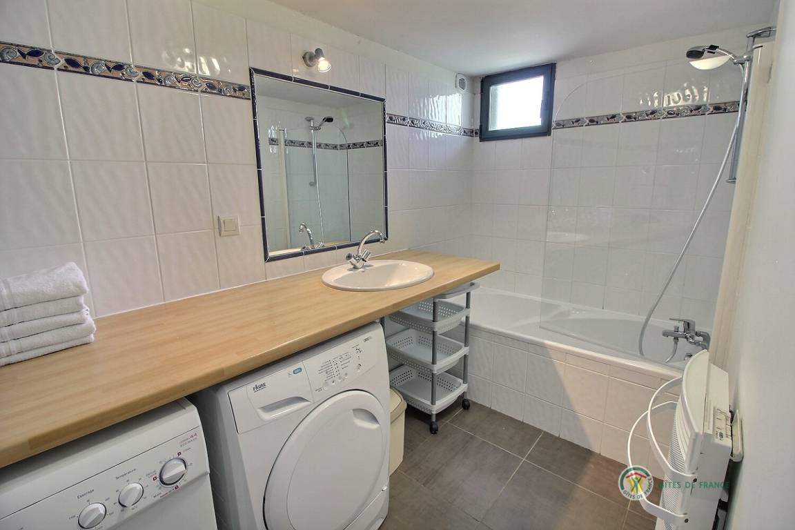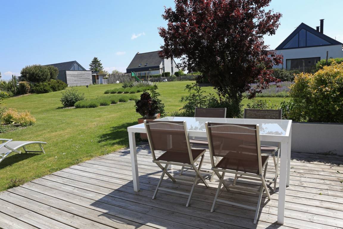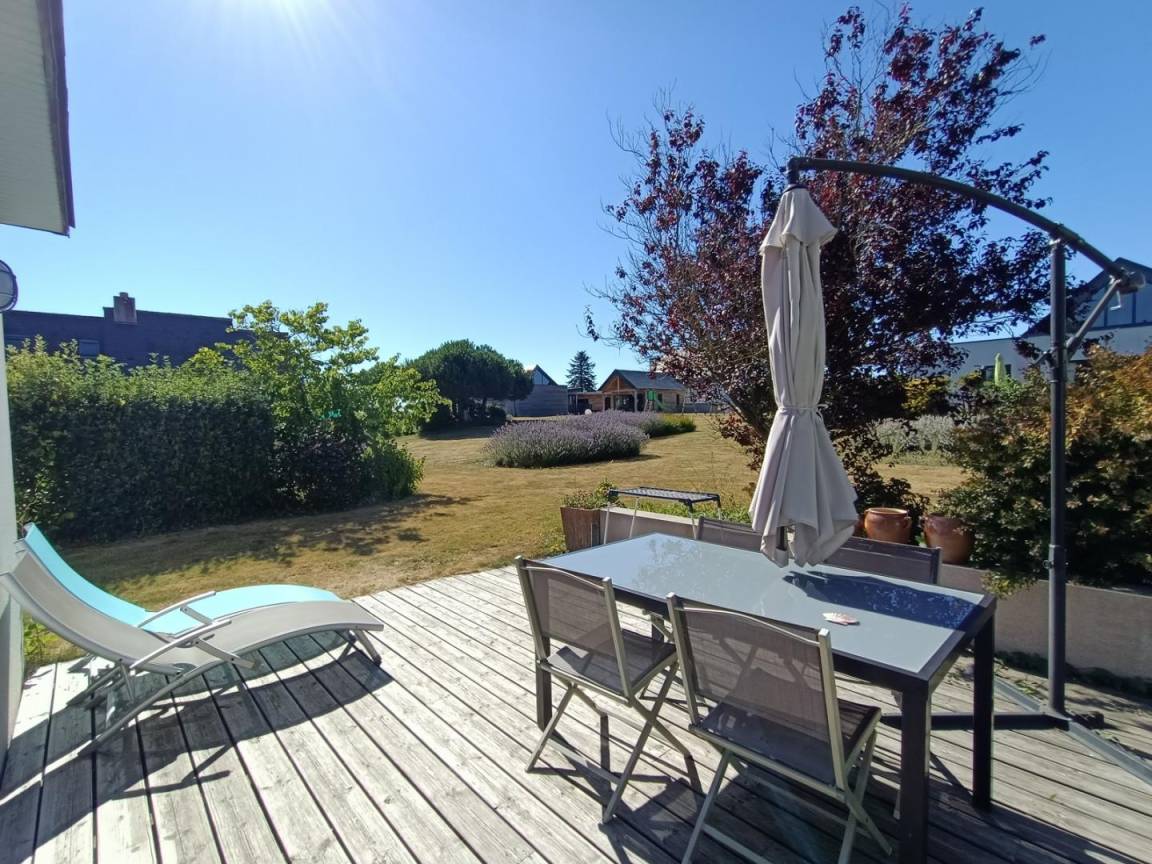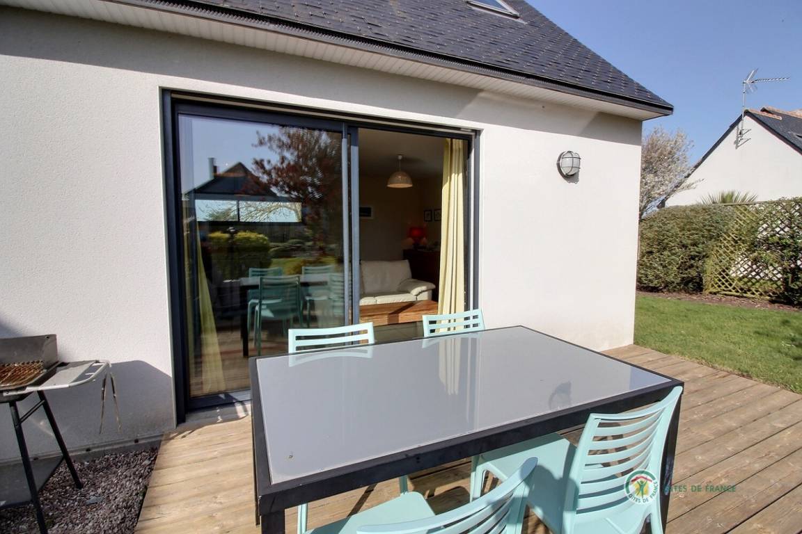 Ihre Ferienwohnung, angrenzend an 22G350156, umfasst im Erdgeschoss: Wohnzimmer (Kamin), gut ausgestattete Küche, Bad mit Badewanne, WC. Obergeschoss mit Meerblick: 2 Schlafzimmer (2 Doppelbetten 80x200 und 1 160x200 Bett). Private Terrasse und Garten. Beheizter Innenpool, Gemeinschaftssauna. Tischtennis und Tischfußball vor Ort.