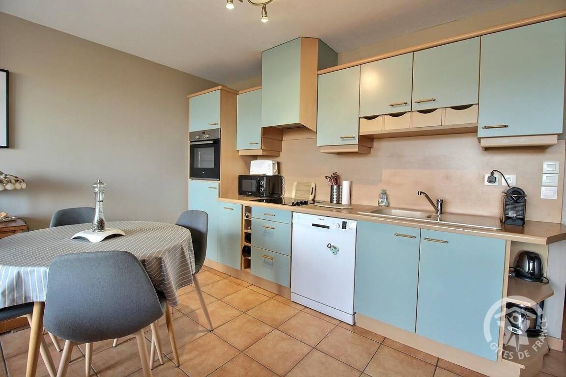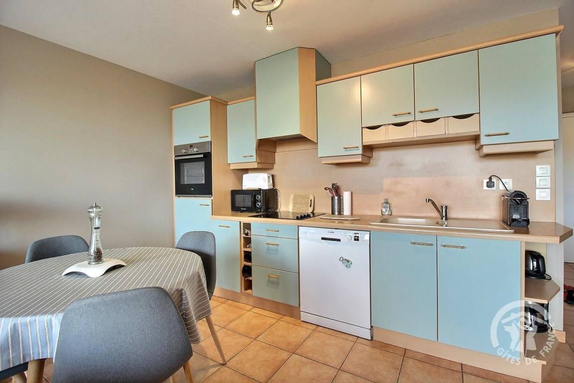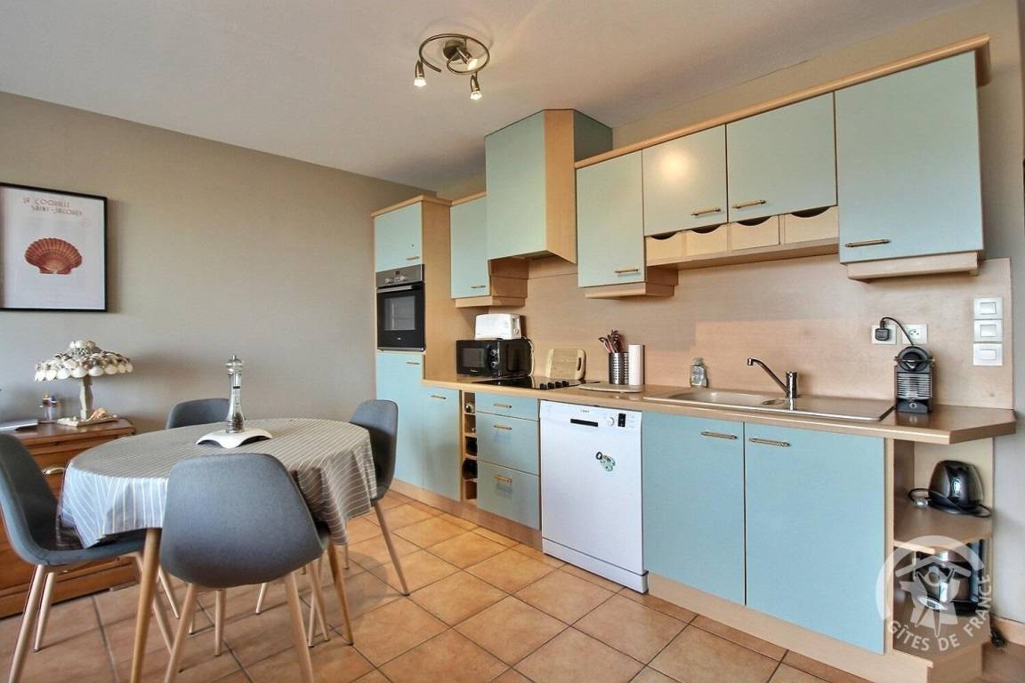 Dieses Ferienhausangebot enthält: Eine Wohnung mit schönem Blick auf das Meer, im 1. Stockwerk eines Wohnsitzes (mit Fahrstuhl). Alle Einrichtungen auf dem gleichen Niveau: eine voll ausgestattete Einbauküche (Mikrowelle, Geschirrspüler, Gefrierfach usw.), Essecke, ein helles Wohnzimmer das zum Balkon führt, 1 Schlafzimmer (1 Bett x 2 Personen), Badezimmer mit Dusche, WC. Eigener Parkplatz verfügbar. Wi-Fi-Internetzugang. Kurtaxe zahlbar vor Ort.