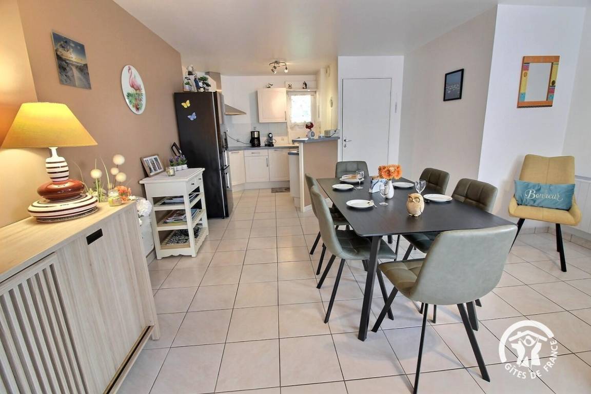 „Gîte idéalement placé entre mer et commerces le centre se trouve à 500M). Les propriétaires sont là pour nous accueillir. La maison est très bien équipée il ne manque de rien. La terrasse permet de prendre les petits déjeuner et repas dans la quiétude. Merci pour cette agréable semaine“