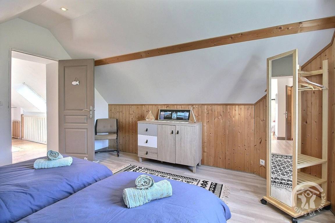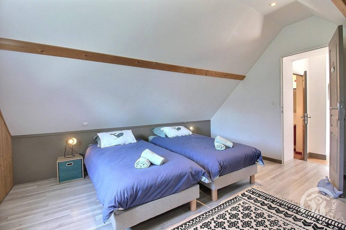 - ein Schlafzimmer mit 2 Einzelbetten. 90 x 200 (Auf vorherige Anfrage besteht die Möglichkeit, sie zu einem Doppelbett von 180 x 200 zu kombinieren).