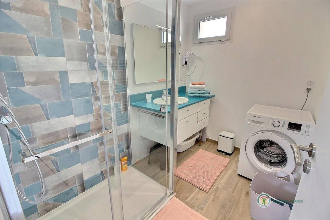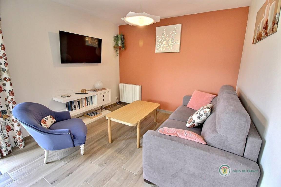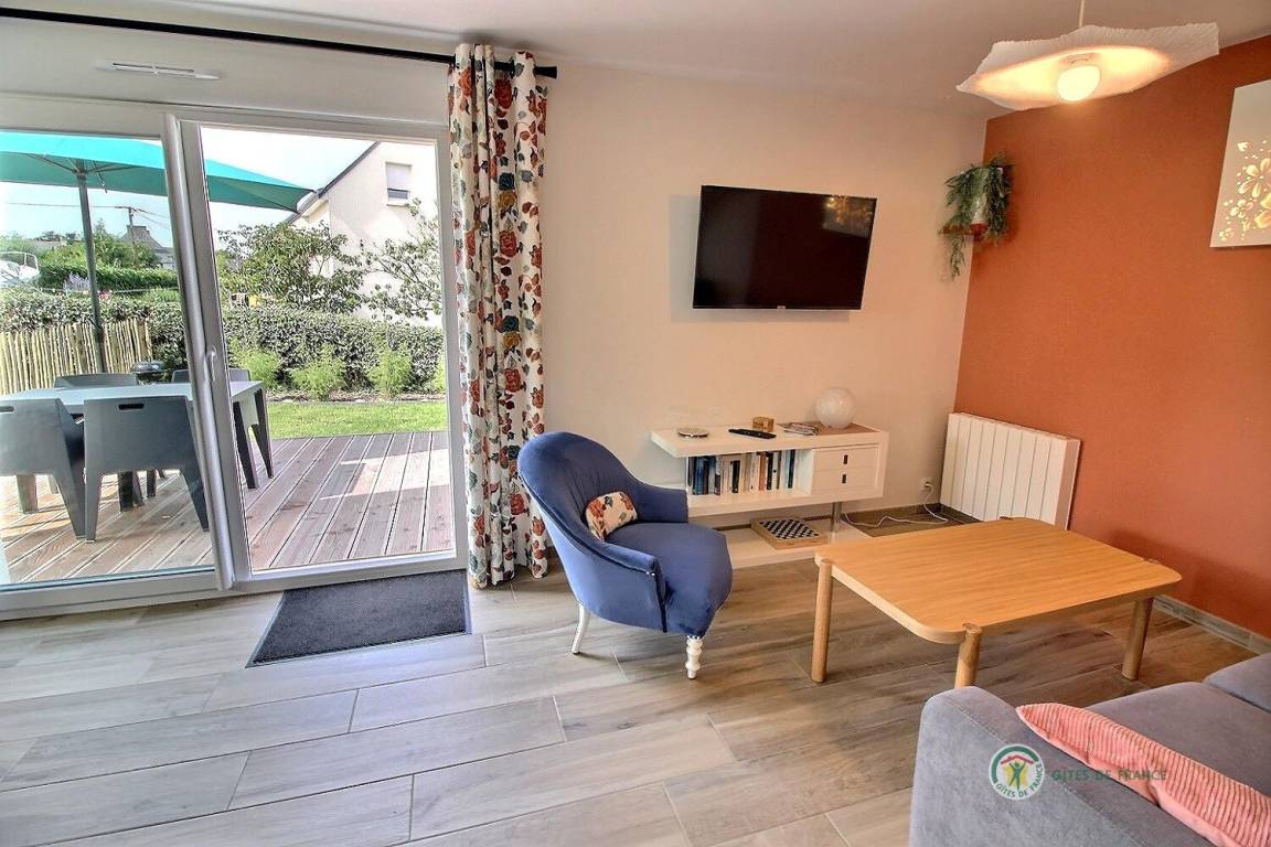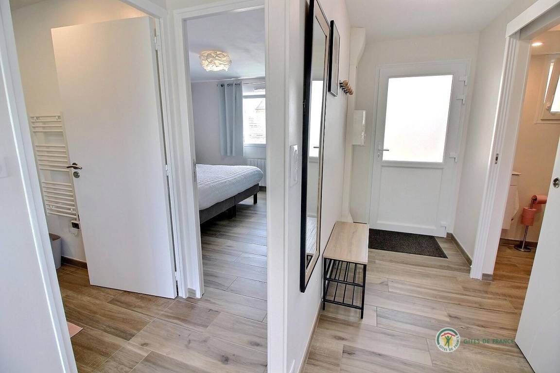 Ihre einstöckige Ferienwohnung umfasst: Eingangshalle, separates WC mit Waschbecken, Einbauküche mit Wohnzimmer und Wohnbereich, 1 Badezimmer mit 120x80-Dusche, ein Schlafzimmer mit 2 90x200-Betten, die zu einem 180x200-Bett zusammengestellt werden können. Schöne Holzterrasse von 12 m² und kleiner eingezäunter Rasen von 36 m². Babyausstattung auf Anfrage. Parken auf dem Grundstück im 100 m² großen offenen Innenhof.