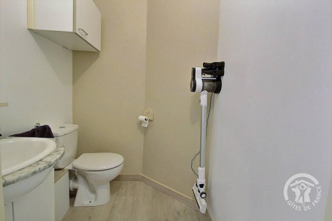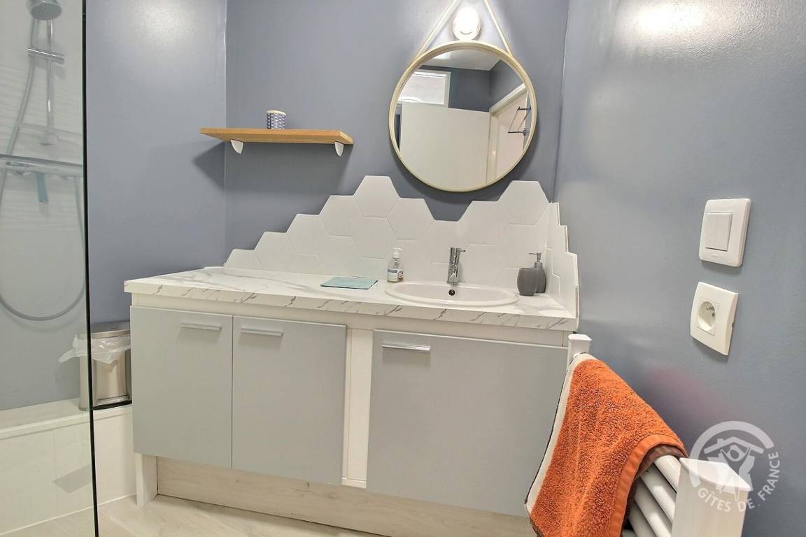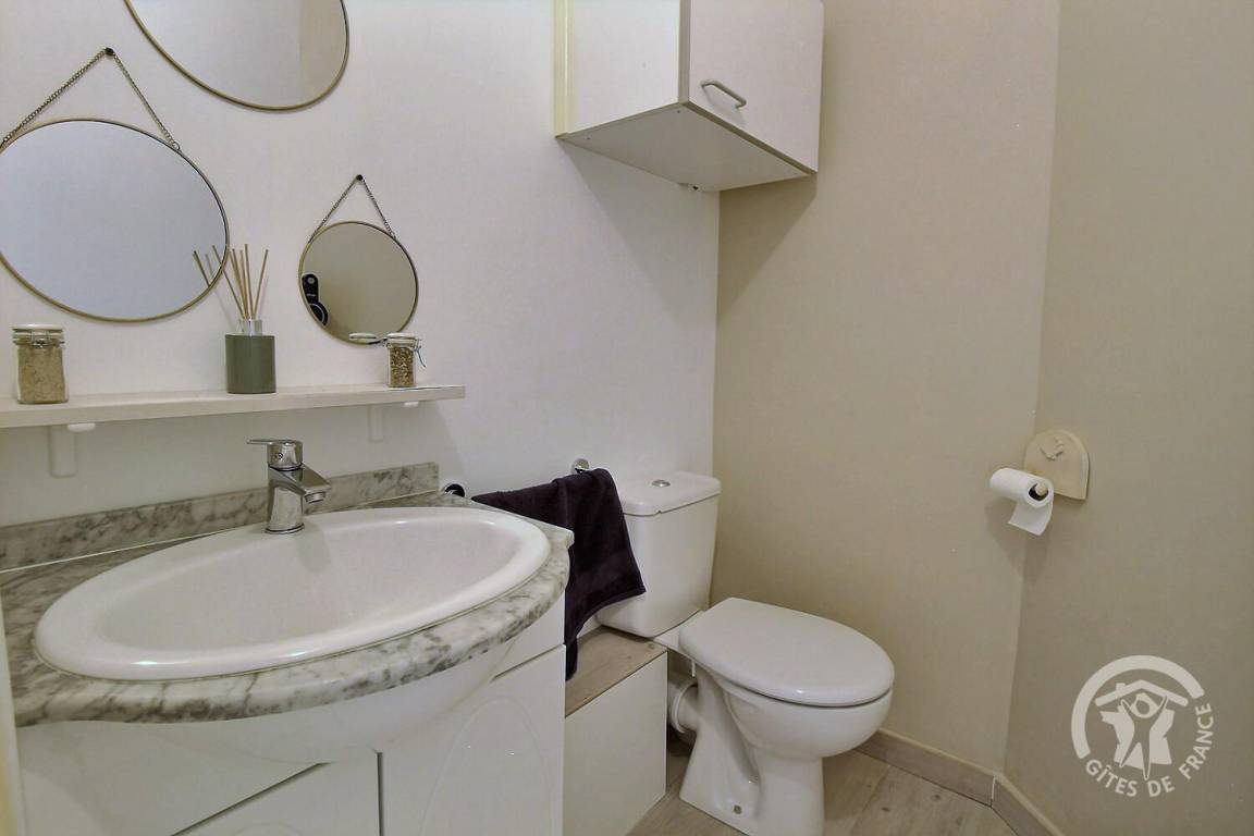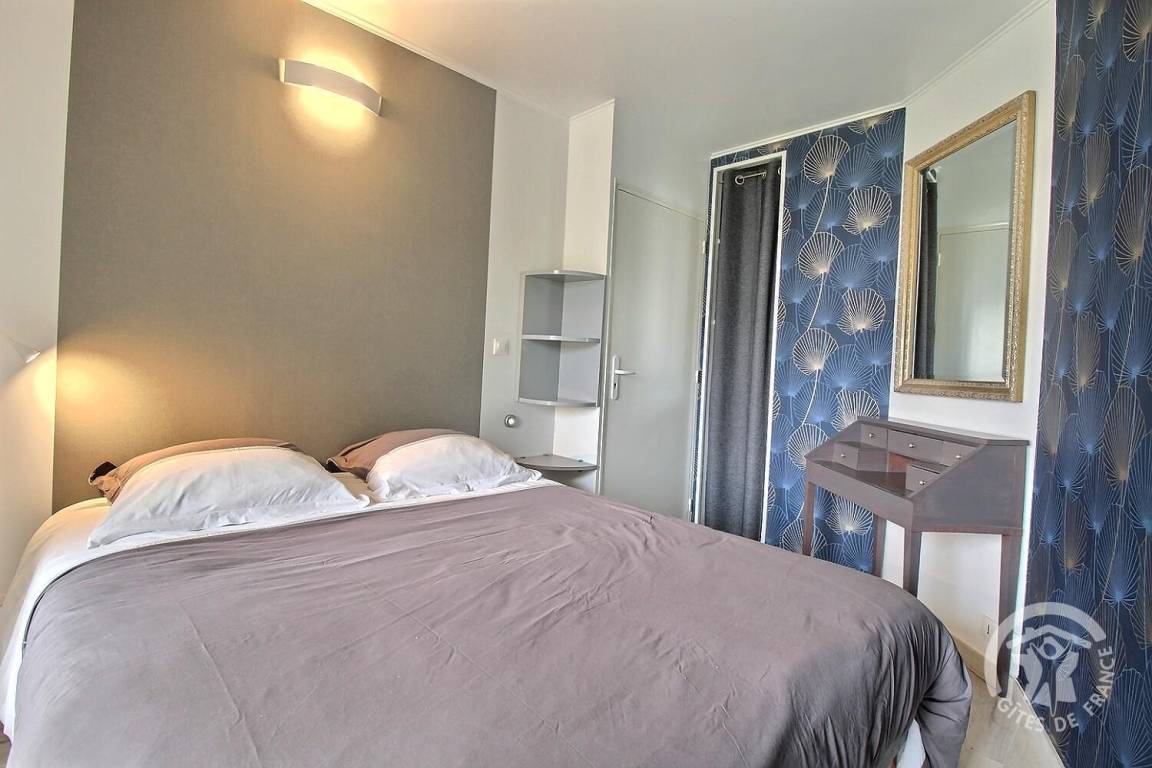 1 Schlafzimmer mit Meerblick (1 Bett 140x200) mit Zugang zu einer Terrasse, Waschküche, ein Badezimmer (ebenerdige Dusche), 1 Schlafzimmer (2 Etagenbetten 90x190), ein weiteres Badezimmer (WC und Waschbecken), ein Schlafzimmer mit Zugang zur Terrasse auf der Rückseite der Residenz (1 Bett 160x200).